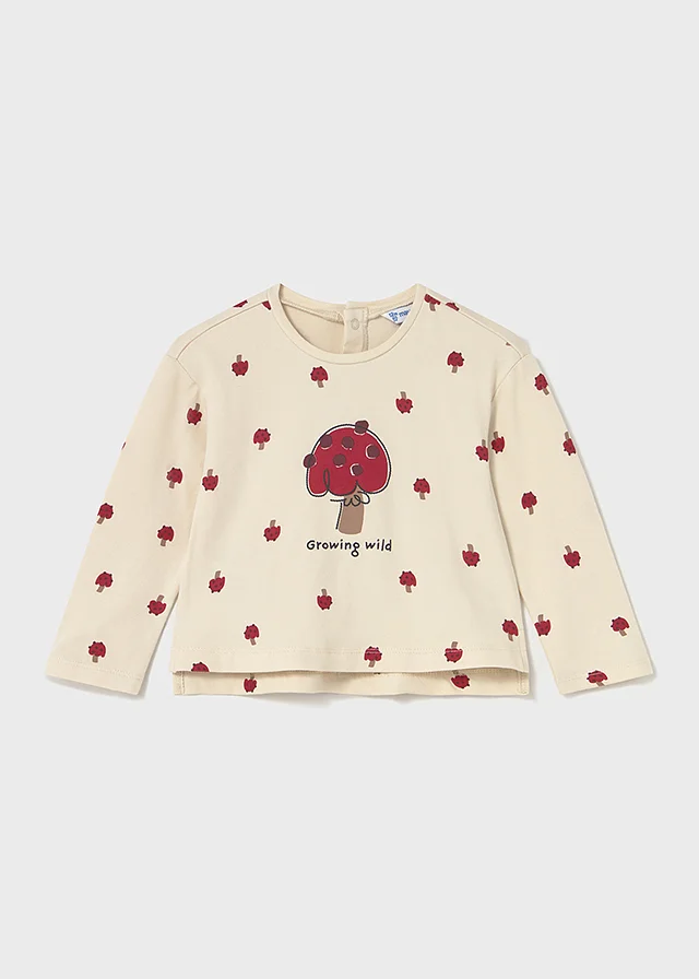 Camiseta de manga larga para bebé. Cuello redondo. Cierre con botones a presión en la parte posterior. Elementos de adorno: serigrafía (print). Diseño estampado. Al elegir nuestros productos de algodón estás apoyando nuestra inversión en la iniciativa Better Cotton. El algodón Better Cotton se obtiene mediante un sistema de balance de masas y no se puede rastrear físicamente hasta los productos finales. Sin embargo, los productores de algodón se benefician de la demanda de Better Cotton en volúmenes equivalentes.