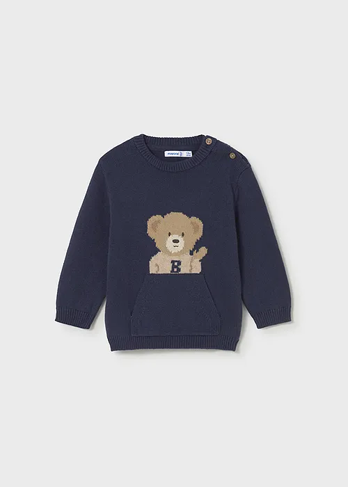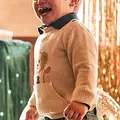 Contiene poliamida reciclada. Jersey de manga larga para bebé. Cuello redondo. Botones en el hombro para facilitar la puesta. Bolsillo funcional en la parte delantera. Elementos de adorno: bordado.