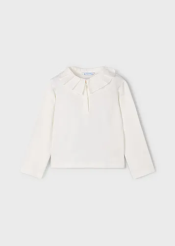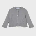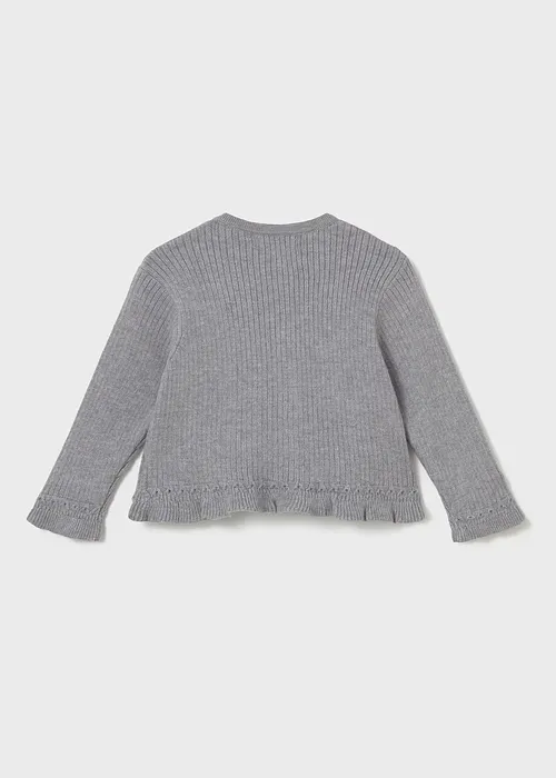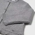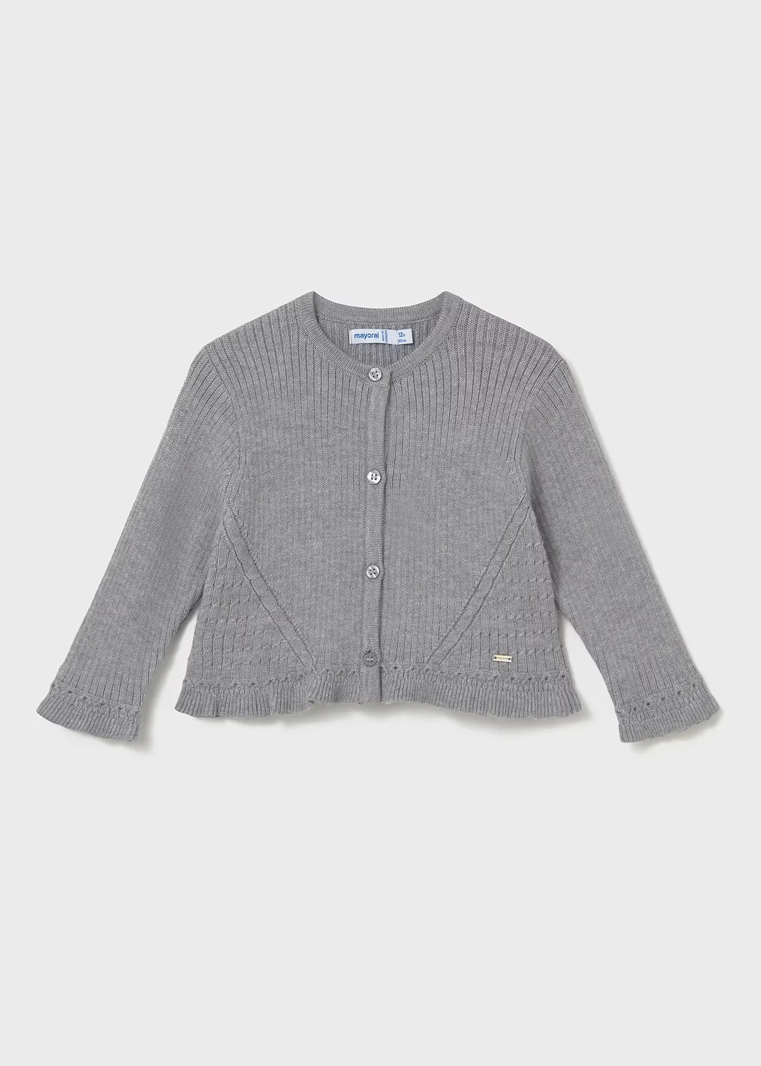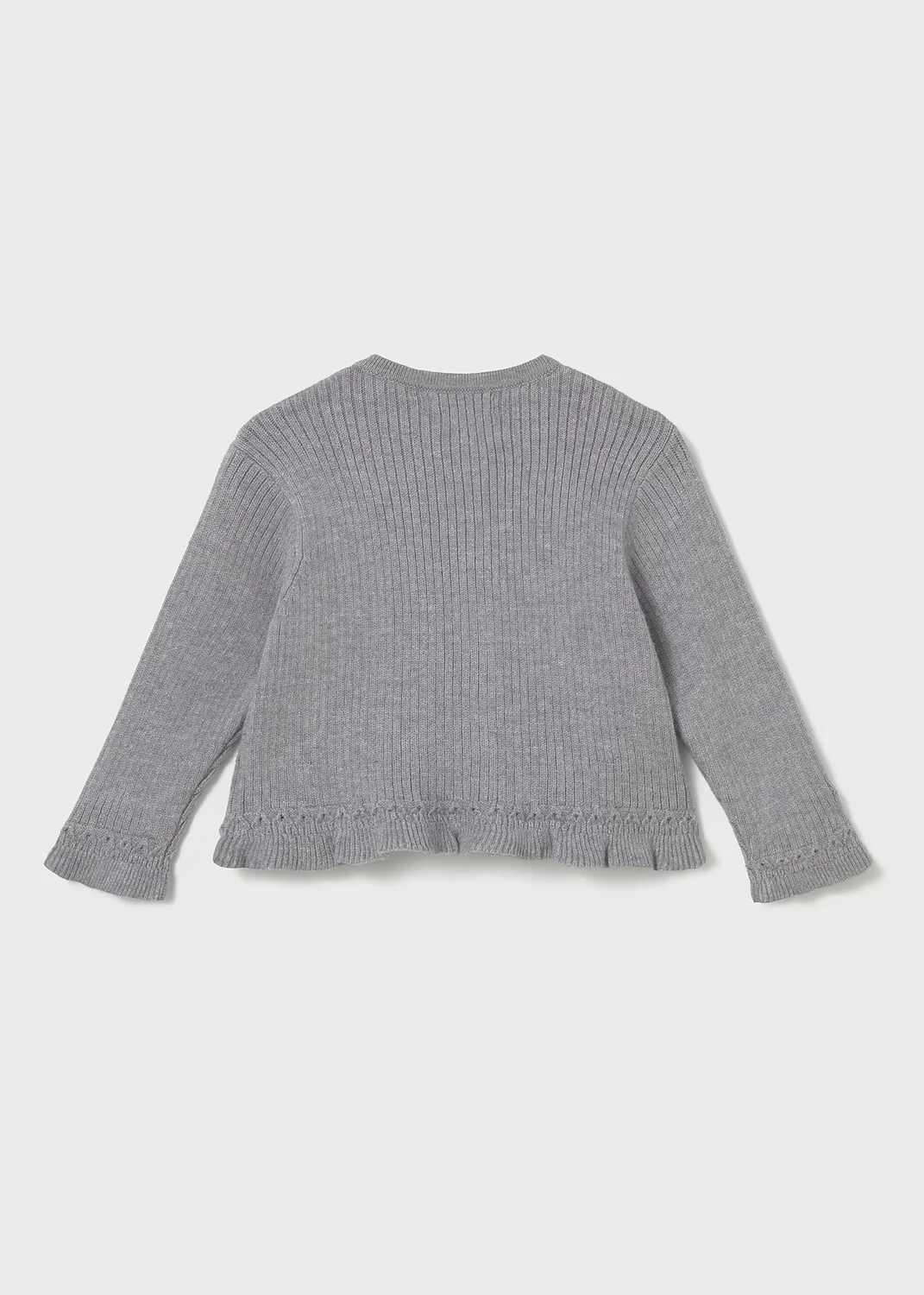 Rebeca de manga larga para bebé. Cuello redondo. Cierre con botones en la parte delantera. Tejido de punto tricotosa de tacto suave y agradable. Modelo con diseño de volantes.