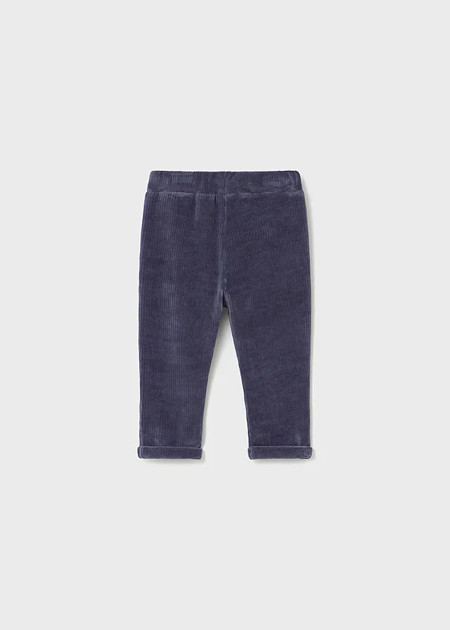 Pantalón largo para bebé de tipo chino y corte holgado (relaxed). Cinturilla elástica con cordón. Cálido tejido de pana de gran comodidad y suavidad. Bolsillos delanteros Elementos de adorno: botones decorativos.