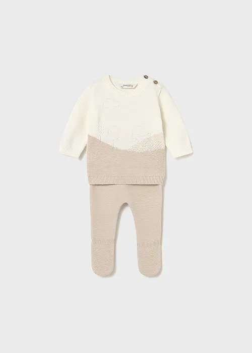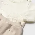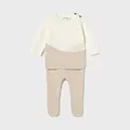Conjunto tricot de dos piezas para recién nacido compuesto por jersey y polaina a juego. Jersey de manga larga para recién nacido. Cuello redondo. Botones en el hombro para facilitar la puesta. Tejido de punto tricotosa de tacto suave y agradable. Dibujos en punto jacquard. Pantalón con pies tipo polaina. Cinturilla elástica. Bolsillos funcionales en la parte delantera. Las tallas pequeñas de este modelo (0-0 a 4-6 meses) tienen cinturilla doble. Al elegir nuestros productos de algodón estás apoyando nuestra inversión en la iniciativa Better Cotton. El algodón Better Cotton se obtiene mediante un sistema de balance de masas y no se puede rastrear físicamente hasta los productos finales. Sin embargo, los productores de algodón se benefician de la demanda de Better Cotton en volúmenes equivalentes.