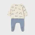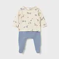 Original set de dos piezas para recién nacido. Sudadera de manga larga para recién nacido. Cuello cruzado y abertura lateral completa que cierra con botones a presión. Suave tejido de algodón elástico. Bolsillo funcional en la parte delantera. Diseño estampado. Pantalón con pies tipo polaina. Cinturilla elástica. Suave tejido de algodón elástico. Bolsillos delanteros decorativos simulados. En este modelo las tallas mayores (de 6-9 a 18 meses) no llevan pies, para facilitar una mejor movilidad del bebé y mayor confort en el uso. Al elegir nuestros productos de algodón estás apoyando nuestra inversión en la iniciativa Better Cotton. El algodón Better Cotton se obtiene mediante un sistema de balance de masas y no se puede rastrear físicamente hasta los productos finales. Sin embargo, los productores de algodón se benefician de la demanda de Better Cotton en volúmenes equivalentes.