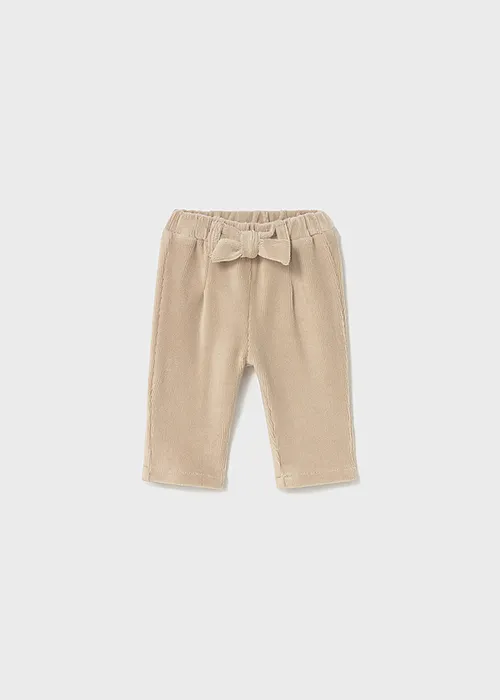 Pantalón para recién nacida. Cinturilla elástica. Cálido tejido de punto pana de gran comodidad y suavidad. Modelo con pinzas. Elementos de adorno: lazo.