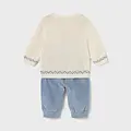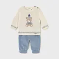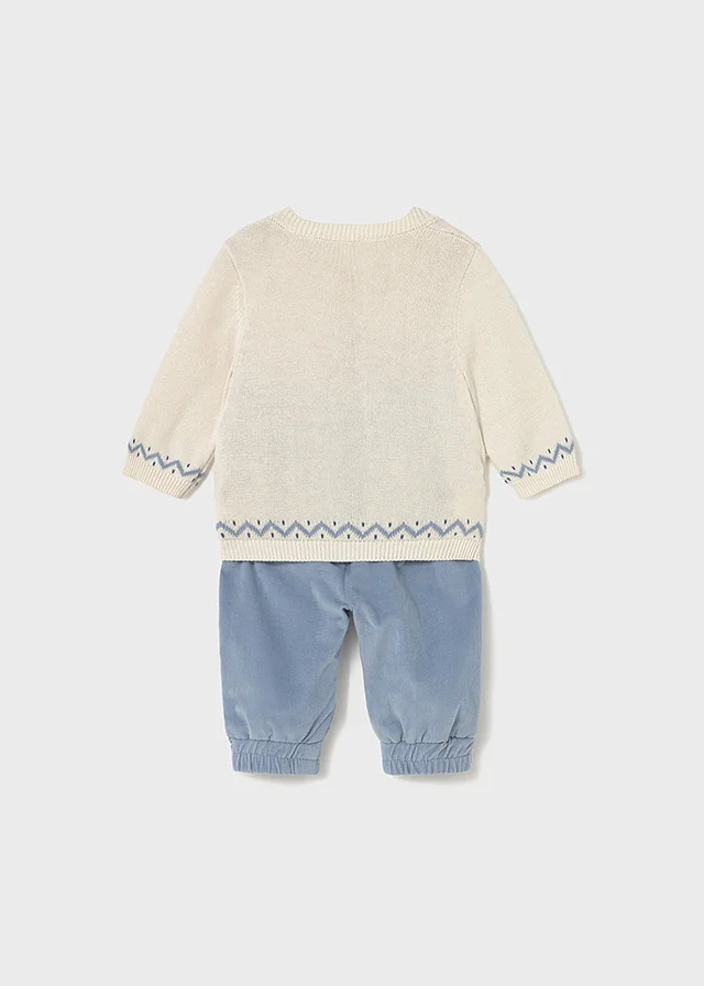 Conjunto de jersey con pantalón largo a juego para recién nacido. Jersey de manga larga para recién nacido. Cuello redondo. Botones en el hombro para facilitar la puesta. Pantalón para recién nacido. Cinturilla elástica. Bajo elástico para un mejor ajuste. Al elegir nuestros productos de algodón estás apoyando nuestra inversión en la iniciativa Better Cotton. El algodón Better Cotton se obtiene mediante un sistema de balance de masas y no se puede rastrear físicamente hasta los productos finales. Sin embargo, los productores de algodón se benefician de la demanda de Better Cotton en volúmenes equivalentes.