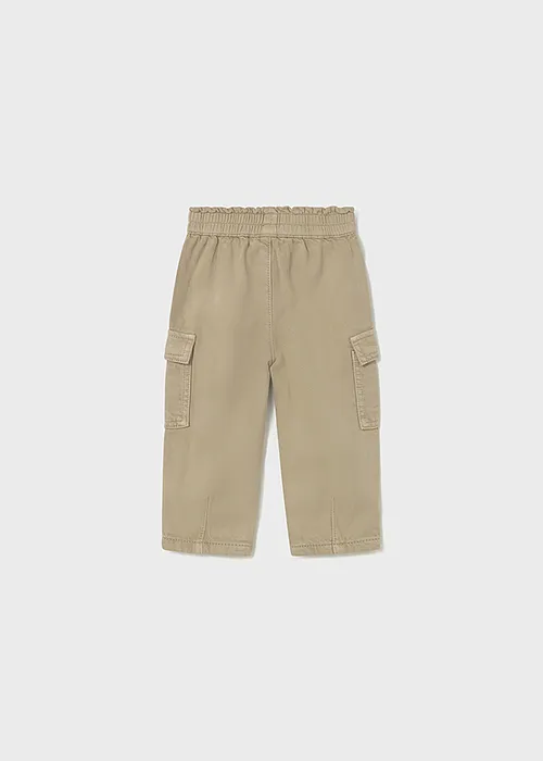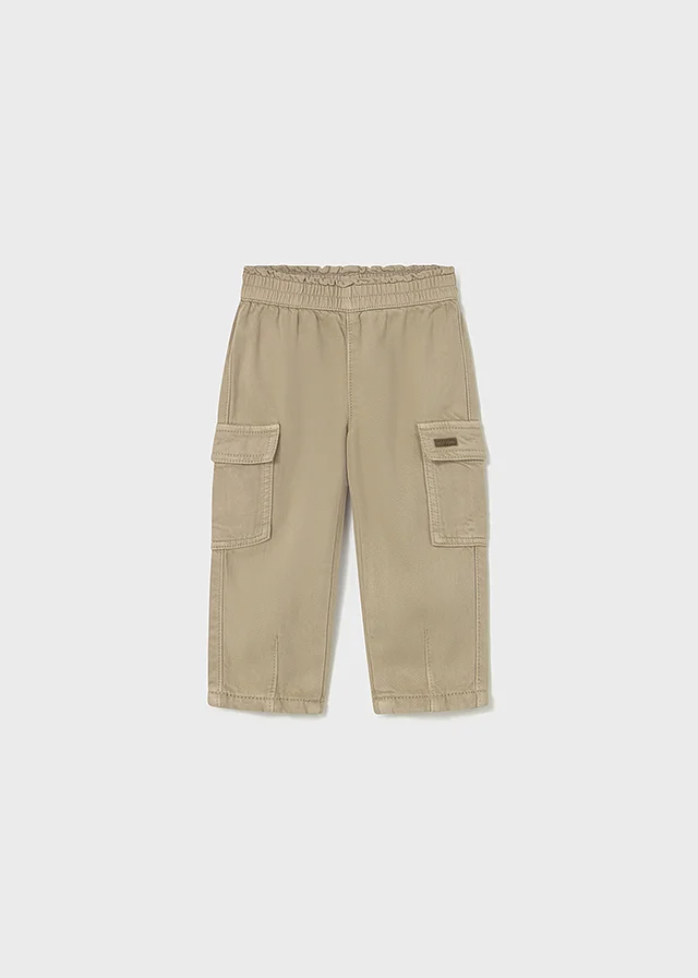 Pantalón largo para bebé de estilo cargo, holgado en la parte superior, tiro caído y ajuste normal en la pernera. Cinturilla elástica. Bolsillos en los laterales.