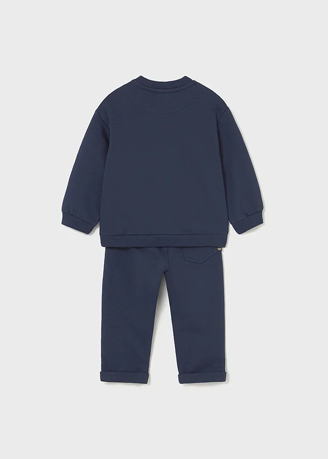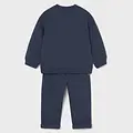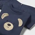 Chándal de dos piezas para bebé con sudadera y pantalón largo. Sudadera de manga larga para bebé. Cuello redondo. Botón a presión en el cuello para facilitar la puesta de la prenda. Elementos de adorno: aplique de orejitas, bordados. Pantalón largo de línea clásica y corte recto (Regular fit) para bebé. Goma elástica regulable con botones en el interior de la cinturilla para mayor ajuste. Cintura con goma elástica y cierre con botón a presión. Elementos de adorno: bolsillo decorativo.