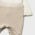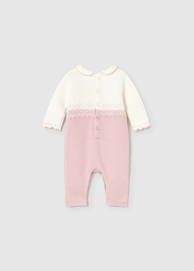 Pelele de manga larga para recién nacida. Botones a presión en la entrepierna para facilitar la puesta de la prenda. Cierre con botones en la espalda para facilitar la puesta de la prenda. Tejido de punto tricotosa de tacto suave y agradable. Elementos de adorno: motivos calados. En este modelo las tallas mayores (de 6-9 a 18 meses) no llevan pies, para facilitar una mejor movilidad del bebé y mayor confort en el uso. Al elegir nuestros productos de algodón estás apoyando nuestra inversión en la iniciativa Better Cotton. El algodón Better Cotton se obtiene mediante un sistema de balance de masas y no se puede rastrear físicamente hasta los productos finales. Sin embargo, los productores de algodón se benefician de la demanda de Better Cotton en volúmenes equivalentes.
