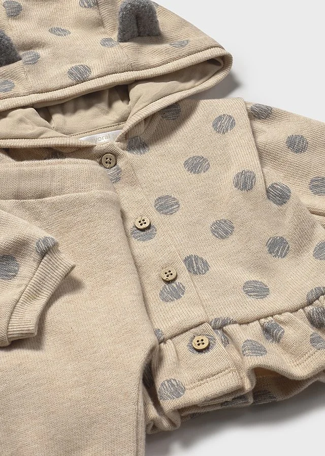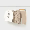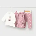 Original conjunto de tres piezas para recién nacido. Sudadera de manga larga para recién nacida. Cuello con capucha. Cierre con botones en la parte delantera. Elementos de adorno: aplique de orejitas. Camiseta de manga larga para recién nacido. Cuello redondo. Cierre con botones a presión en la parte posterior. Elementos de adorno: aplique decorativo, serigrafía (print). Cinturilla elástica. Bajo elástico para un mejor ajuste. Al elegir nuestros productos de algodón estás apoyando nuestra inversión en la iniciativa Better Cotton. El algodón Better Cotton se obtiene mediante un sistema de balance de masas y no se puede rastrear físicamente hasta los productos finales. Sin embargo, los productores de algodón se benefician de la demanda de Better Cotton en volúmenes equivalentes.