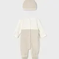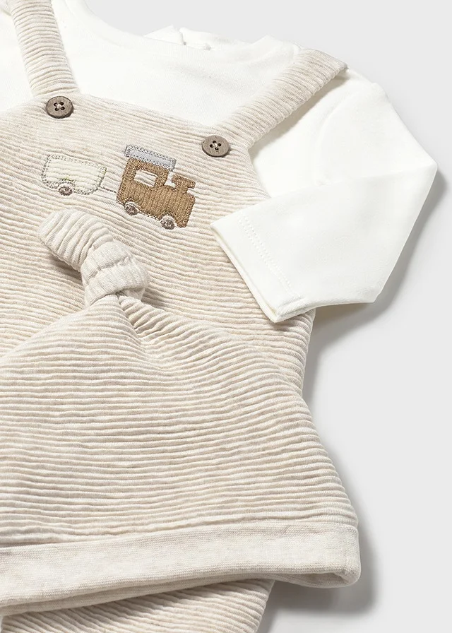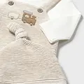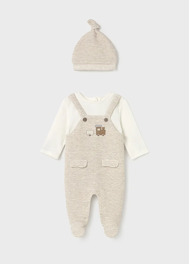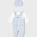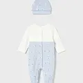 Original set de dos piezas para recién nacido. Pelele de manga larga para recién nacido. Cuello redondo. Diseño con peto simulado en superposición. Cierre con botones a presión en la parte posterior. Botones a presión en la entrepierna para facilitar la puesta de la prenda. Cálido tejido elegante y sofisticado para las ocasiones más especiales. Prenda con pernera extensible. Gorro para recién nacido de materiales cálidos y flexibles, que garantizan un ajuste perfecto a la cabeza y máxima comodidad para protegerle del frío. Al elegir nuestros productos de algodón estás apoyando nuestra inversión en la iniciativa Better Cotton. El algodón Better Cotton se obtiene mediante un sistema de balance de masas y no se puede rastrear físicamente hasta los productos finales. Sin embargo, los productores de algodón se benefician de la demanda de Better Cotton en volúmenes equivalentes.