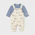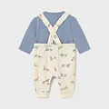 Contiene algodón orgánico. Conjunto de camiseta con peto a juego para recién nacido. Camiseta de manga larga para recién nacido. Cuello redondo. Diseño con tirantes. Botones a presión en la entrepierna para facilitar la puesta de la prenda. Cierre con botones a presión en tirantes y cintura para facilitar la puesta de la prenda. Cinturilla elástica. Suave tejido de algodón elástico. Bolsillo funcional en la parte delantera. Diseño estampado. Al elegir nuestros productos de algodón estás apoyando nuestra inversión en la iniciativa Better Cotton. El algodón Better Cotton se obtiene mediante un sistema de balance de masas y no se puede rastrear físicamente hasta los productos finales. Sin embargo, los productores de algodón se benefician de la demanda de Better Cotton en volúmenes equivalentes.