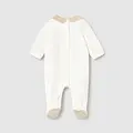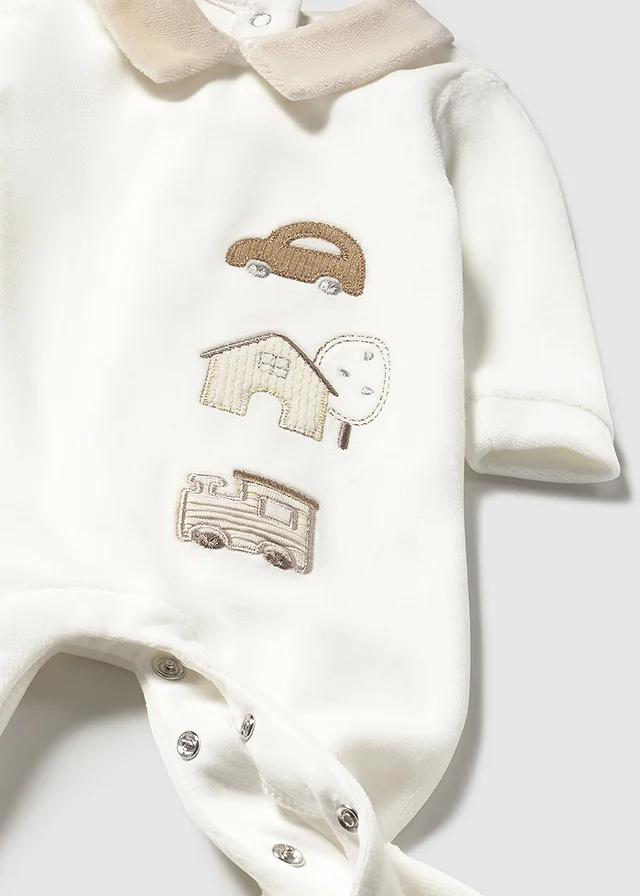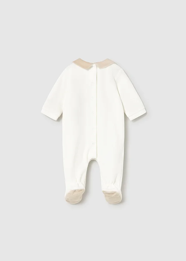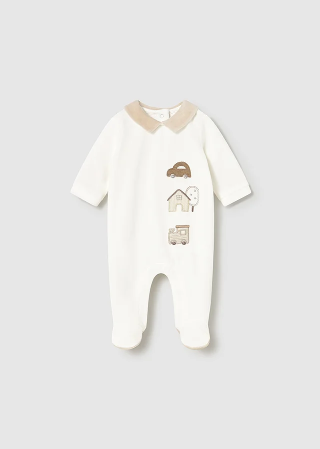 Pijama de manga larga para recién nacido. Cuello camisero. Cierre con botones a presión en la parte posterior. Botones a presión en la entrepierna para facilitar la puesta de la prenda. Cálido tejido de algodón con tacto suave y aterciopelado. Elementos de adorno: bordado. Las tallas mayores de este modelo (12 y 18 meses) presentan una suela antideslizante. Al elegir nuestros productos de algodón estás apoyando nuestra inversión en la iniciativa Better Cotton. El algodón Better Cotton se obtiene mediante un sistema de balance de masas y no se puede rastrear físicamente hasta los productos finales. Sin embargo, los productores de algodón se benefician de la demanda de Better Cotton en volúmenes equivalentes.