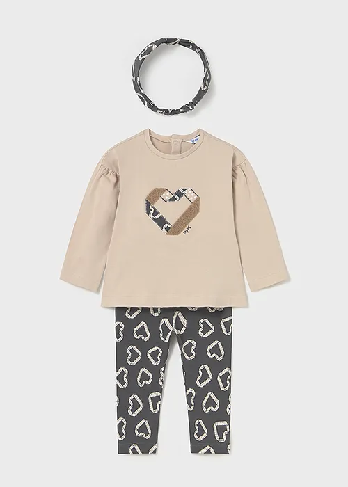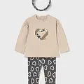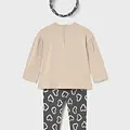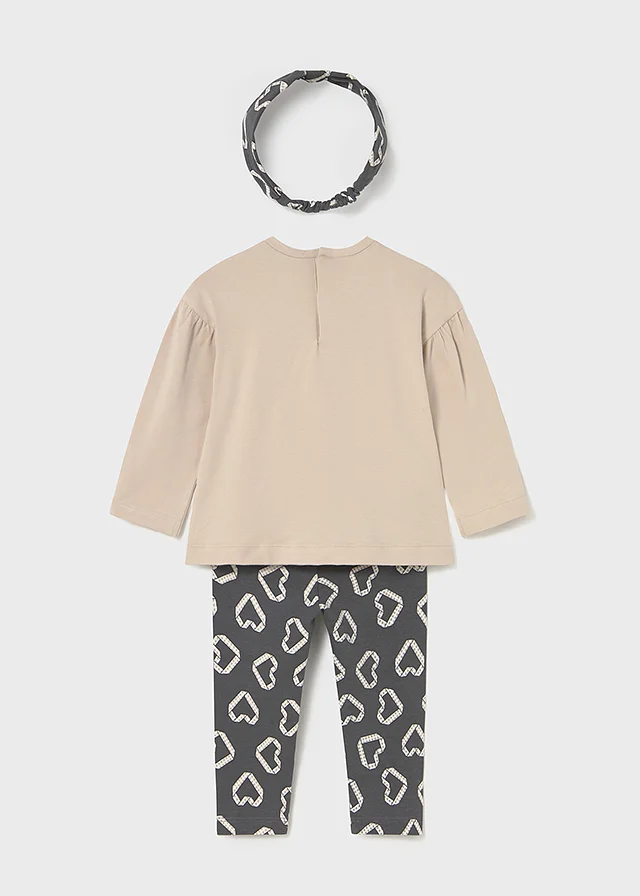 Original conjunto de tres piezas para bebé. Camiseta de líneas relajadas para bebé. Cuello redondo. Cierre con botones a presión en la parte posterior. Suave tejido de algodón elástico. Modelo con rizo. Elementos de adorno: aplique posicionado. Pantalón tipo legging para bebé. Cinturilla elástica. Suave tejido de algodón elástico. Diseño estampado. Bonita diadema tipo cinta de pelo para bebé. Podrás combinar este accesorio con todo tipo de looks. Diseño estampado. Al elegir nuestros productos de algodón estás apoyando nuestra inversión en la iniciativa Better Cotton. El algodón Better Cotton se obtiene mediante un sistema de balance de masas y no se puede rastrear físicamente hasta los productos finales. Sin embargo, los productores de algodón se benefician de la demanda de Better Cotton en volúmenes equivalentes.