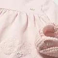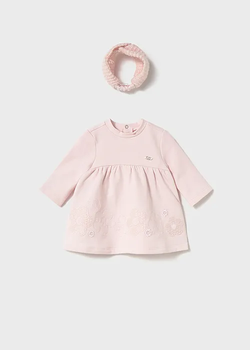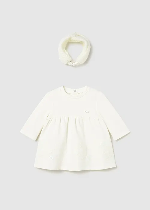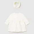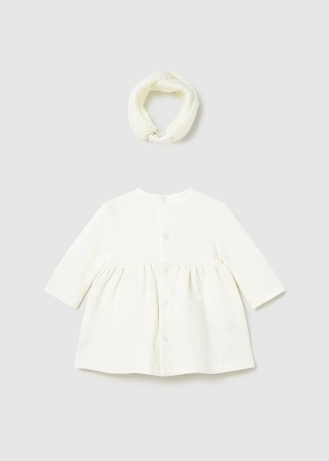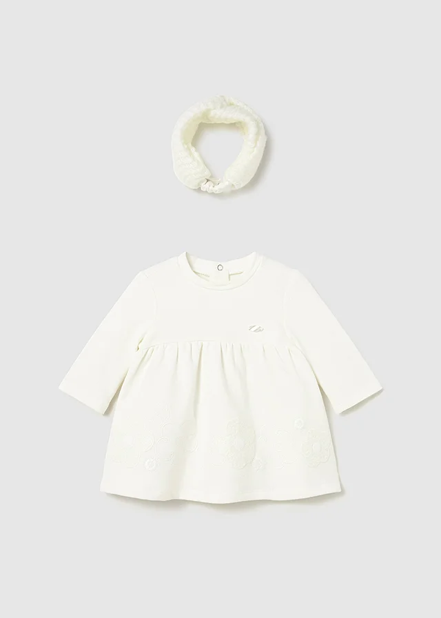 Vestido para recién nacido con diadema a juego. Vestido de manga larga para recién nacido. Cuello redondo. Cierre con botones a presión en la parte posterior. Elementos de adorno: aplique floral, bordado. Original diadema para recién nacido, perfecta como accesorio para completar el look. Al elegir nuestros productos de algodón estás apoyando nuestra inversión en la iniciativa Better Cotton. El algodón Better Cotton se obtiene mediante un sistema de balance de masas y no se puede rastrear físicamente hasta los productos finales. Sin embargo, los productores de algodón se benefician de la demanda de Better Cotton en volúmenes equivalentes. Este exclusivo artículo pertenece a la colección de Ceremonia y ha sido diseñado para celebraciones, eventos y ocasiones especiales.