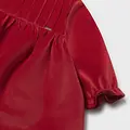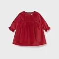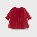 Vestido de manga larga para recién nacida con puños elásticos. Cuello redondo. Cierre con cremallera trasera invisible. Confección en tejido de terciopelo elegante y clásico. Modelo con rizo.