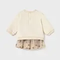 Original conjunto de dos piezas para recién nacida. Sudadera de manga larga para recién nacida. Cuello redondo. Cierre con botones a presión en la parte posterior. Elementos de adorno: lazo. Falda para recién nacida. Cinturilla elástica. Al elegir nuestros productos de algodón estás apoyando nuestra inversión en la iniciativa Better Cotton. El algodón Better Cotton se obtiene mediante un sistema de balance de masas y no se puede rastrear físicamente hasta los productos finales. Sin embargo, los productores de algodón se benefician de la demanda de Better Cotton en volúmenes equivalentes.