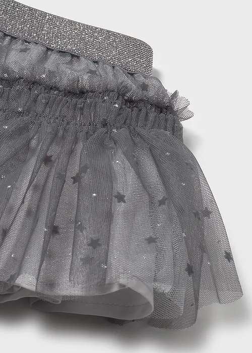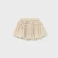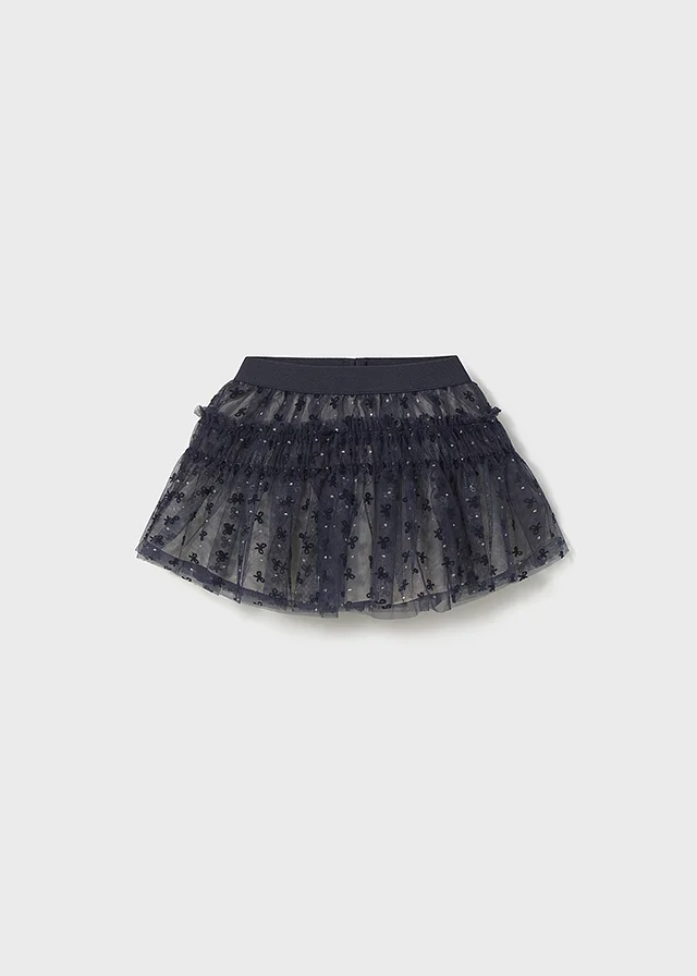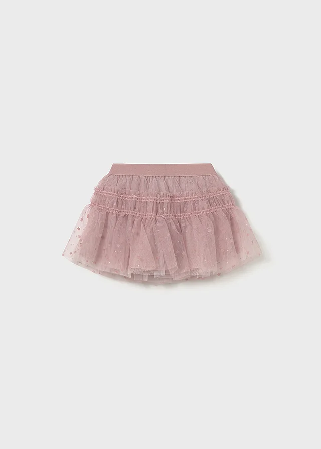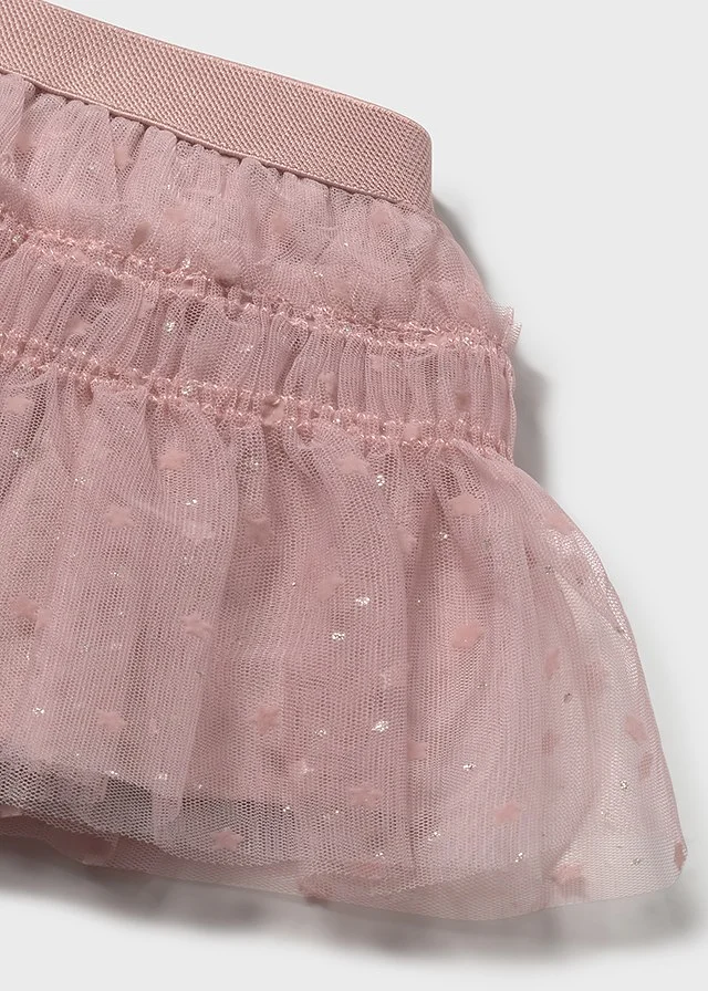 Falda para bebé. Cinturilla elástica. Confección en tejido de tul ligero y vaporoso. Modelo con forro interior. Modelo con rizo. Estampado de lunares.
