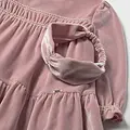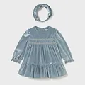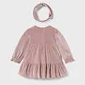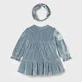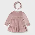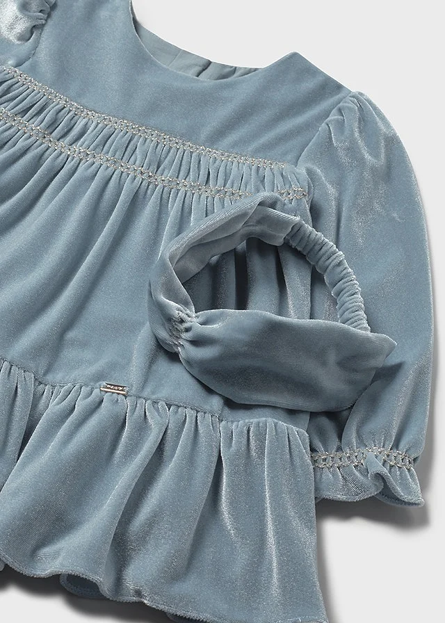 Vestido para bebé con diadema a juego. Vestido de manga larga para bebé con volante en la bocamanga. Cierre central trasero con cremallera oculta. Confección en tejido de terciopelo elegante y clásico. Este modelo lleva detalles de nido de abeja. Modelo con rizo y volantes. Original diadema para bebé, perfecta como accesorio para completar el look. Confección en tejido de terciopelo elegante y clásico. Elementos de adorno: detalles fruncidos de punto smock (nido de abeja), detalles fruncidos.