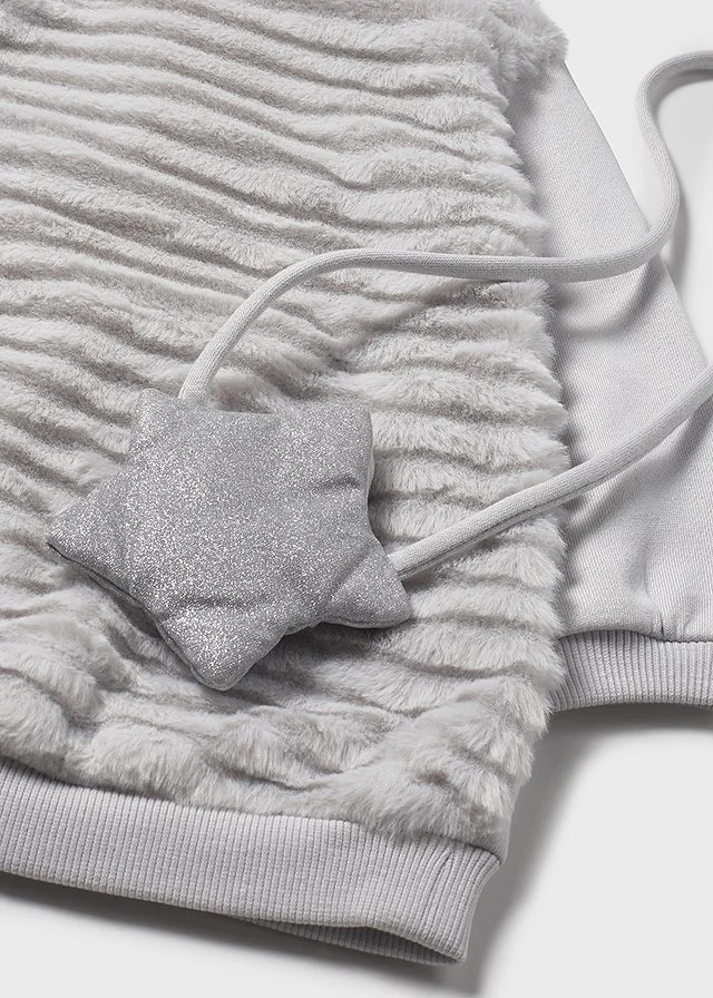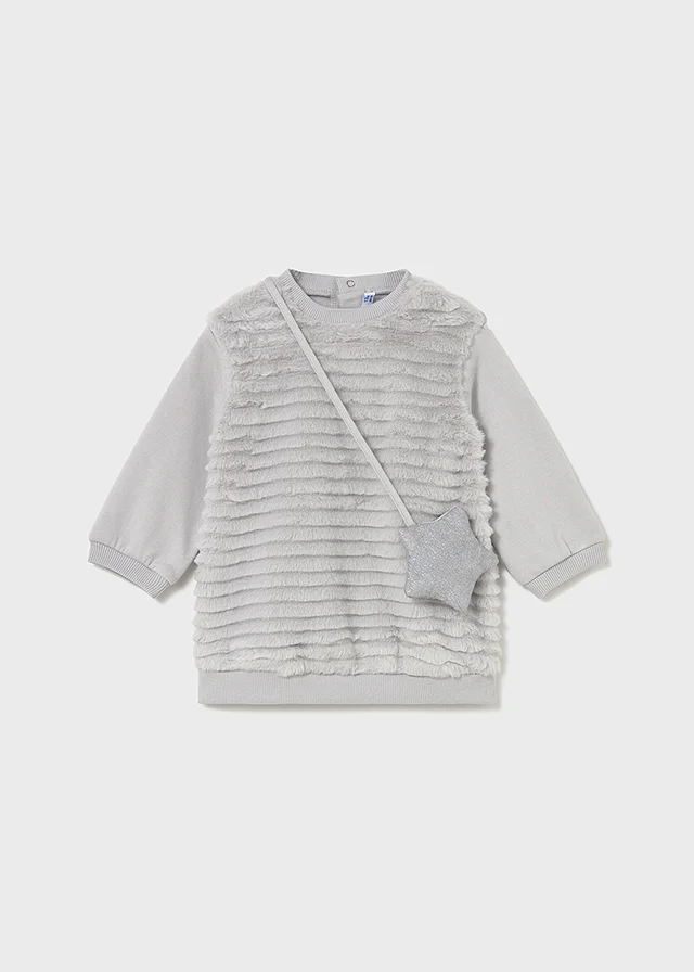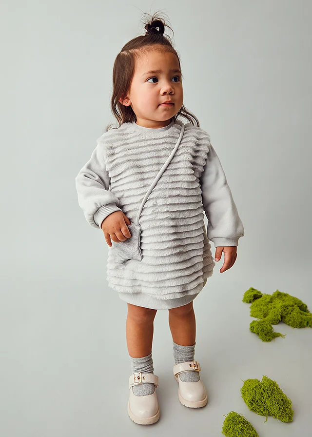 Original set de dos piezas para bebé. Vestido de manga larga para bebé. Cuello redondo. Cierre con botones a presión en la parte posterior. Modelo con forro interior. Bolso para bebé pensado para guardar sus accesorios indispensables. Un complemento práctico y divertido para completar cualquier look. Cierre con botón a presión oculto para una puesta ágil y rápida. Divertido tejido de borreguito.
