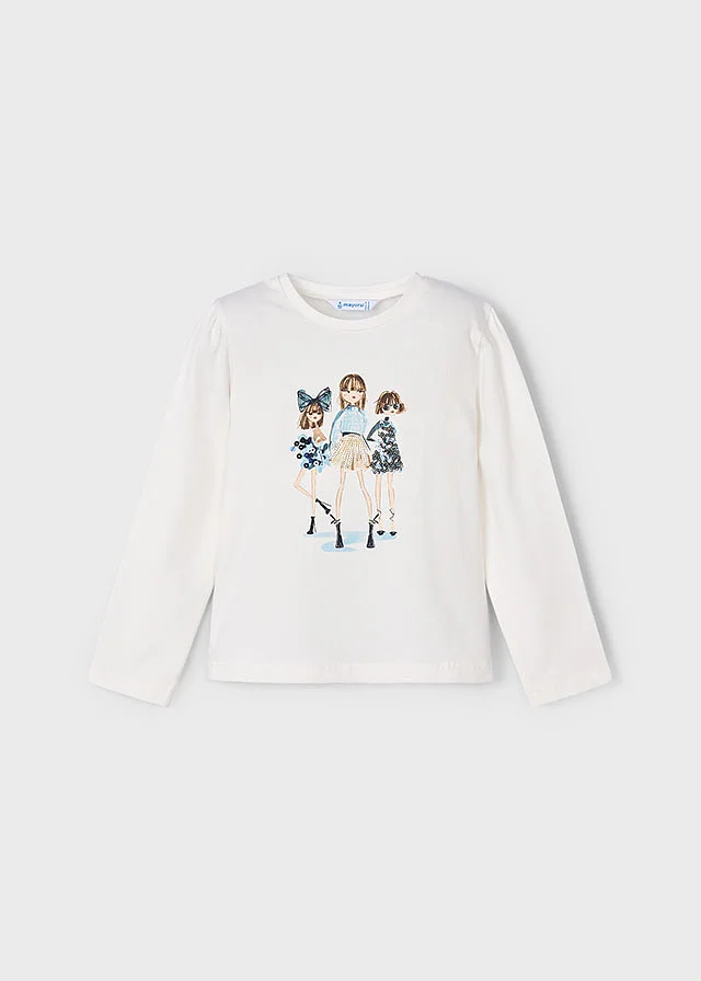 Camiseta de manga larga para niña. Cuello redondo. Suave tejido de algodón elástico. Elementos de adorno: lentejuelas. Diseño con muñecas. Al elegir nuestros productos de algodón estás apoyando nuestra inversión en la iniciativa Better Cotton. El algodón Better Cotton se obtiene mediante un sistema de balance de masas y no se puede rastrear físicamente hasta los productos finales. Sin embargo, los productores de algodón se benefician de la demanda de Better Cotton en volúmenes equivalentes.