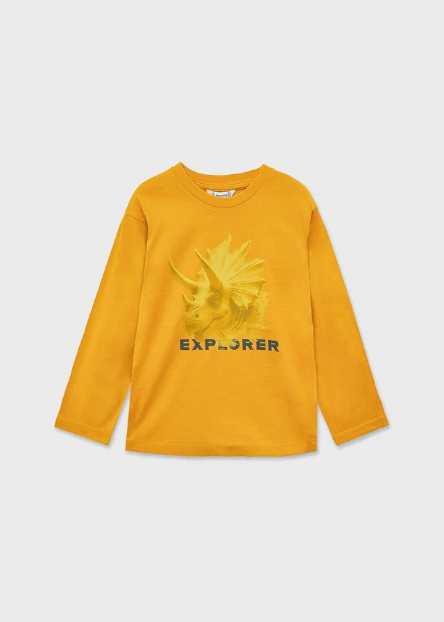 Camiseta de manga larga para niño. Cuello redondo. Tejido 100% algodón. Elementos de adorno: serigrafía (print).