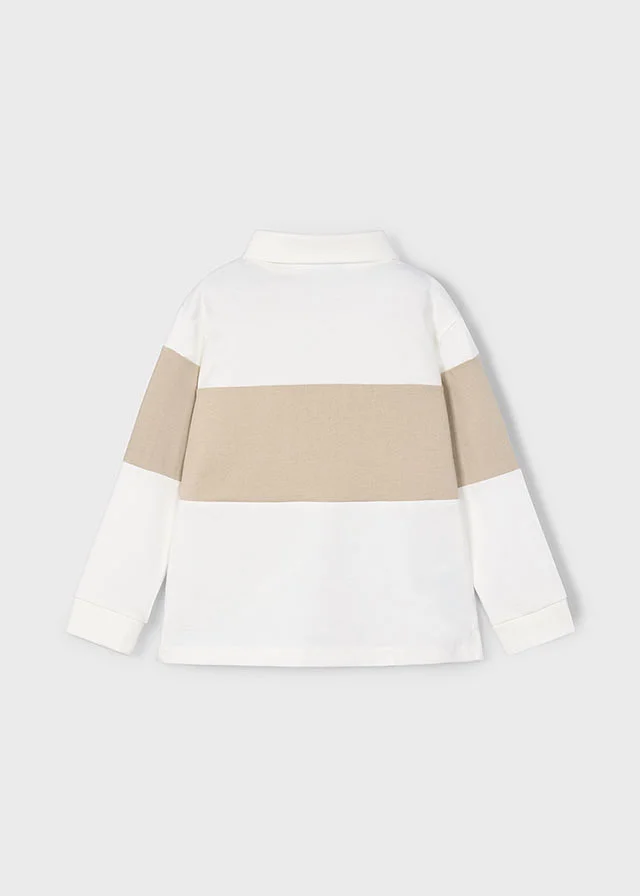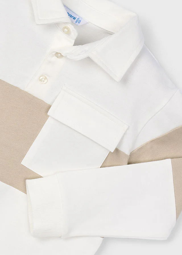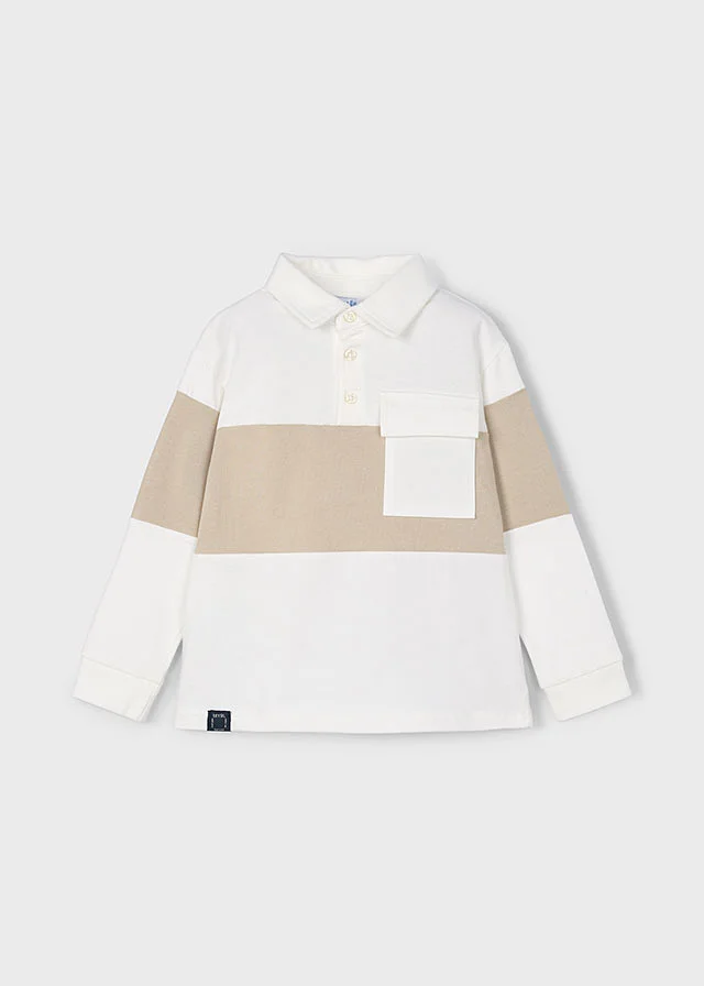 Polo de manga larga para niño. Cuello de polo clásico. Tejido 100% algodón. Bolsillo funcional en la parte delantera. Motivo de rayas. Al elegir nuestros productos de algodón estás apoyando nuestra inversión en la iniciativa Better Cotton. El algodón Better Cotton se obtiene mediante un sistema de balance de masas y no se puede rastrear físicamente hasta los productos finales. Sin embargo, los productores de algodón se benefician de la demanda de Better Cotton en volúmenes equivalentes.