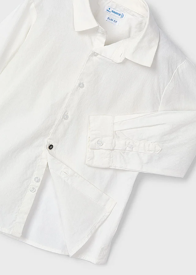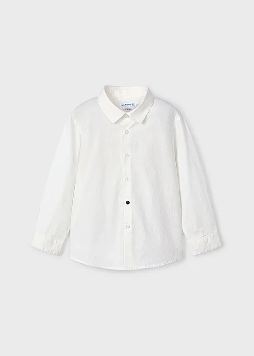 Camisa de manga larga para niño. Cuello camisero. Cierre con botones en la parte delantera. Al elegir nuestros productos de algodón estás apoyando nuestra inversión en la iniciativa Better Cotton. El algodón Better Cotton se obtiene mediante un sistema de balance de masas y no se puede rastrear físicamente hasta los productos finales. Sin embargo, los productores de algodón se benefician de la demanda de Better Cotton en volúmenes equivalentes.