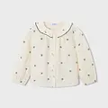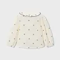 Blusa de manga larga para niña con puños elásticos. Cuello redondo con volante. Cierre con botones en la parte delantera. Diseño estampado. Al elegir nuestros productos de algodón estás apoyando nuestra inversión en la iniciativa Better Cotton. El algodón Better Cotton se obtiene mediante un sistema de balance de masas y no se puede rastrear físicamente hasta los productos finales. Sin embargo, los productores de algodón se benefician de la demanda de Better Cotton en volúmenes equivalentes.