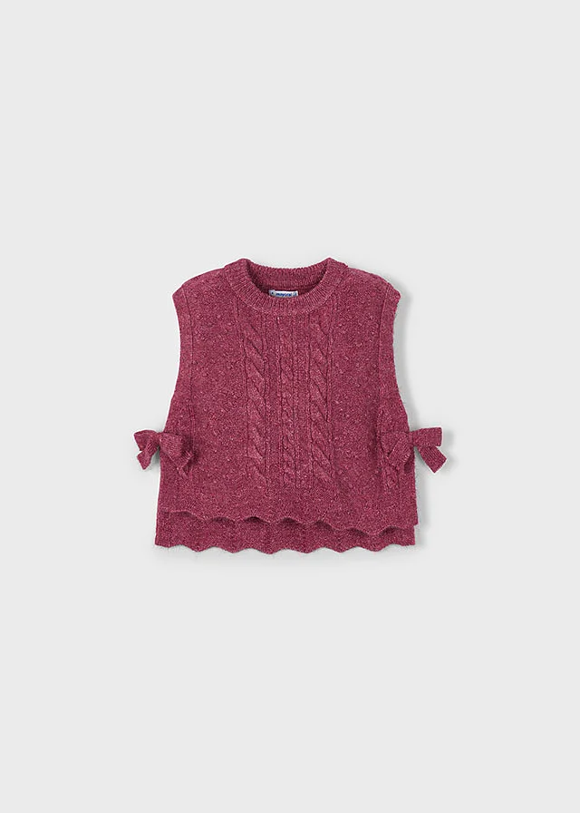 Contiene poliéster reciclado. Chaleco para niña. Cuello redondo. Tejido de punto tricotosa de tacto suave y agradable.