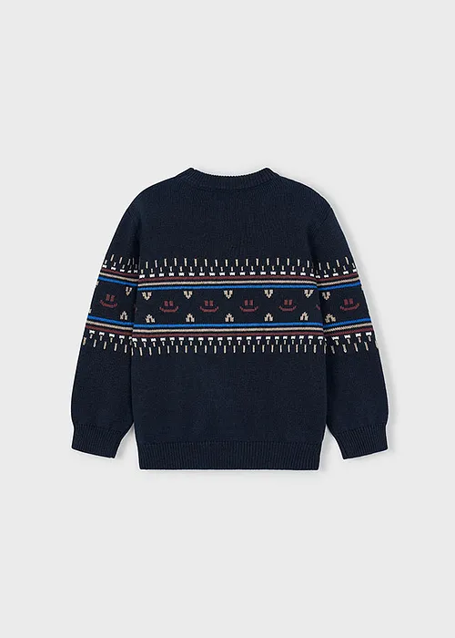 Contiene poliamida reciclada. Jersey de manga larga para niño. Cuello redondo. Tejido de punto tricotosa de tacto suave y agradable. Se trata de un artículo de diseño unisex de gran versatilidad por la neutralidad de sus tonos y su forma.