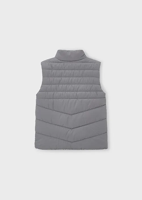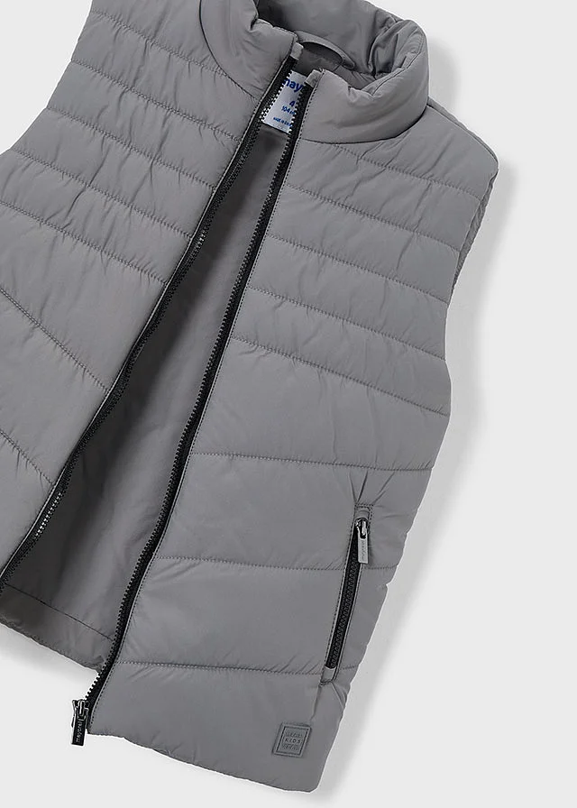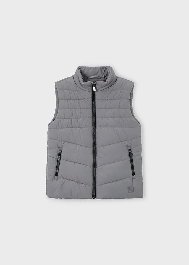 Contiene poliéster reciclado. Chaleco para niño. Cierre central delantero con cremallera. Exterior textil con efecto acolchado. Suave forro interior de poliéster. Bolsillos funcionales en la parte delantera.
