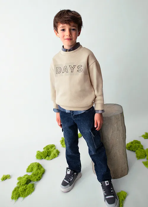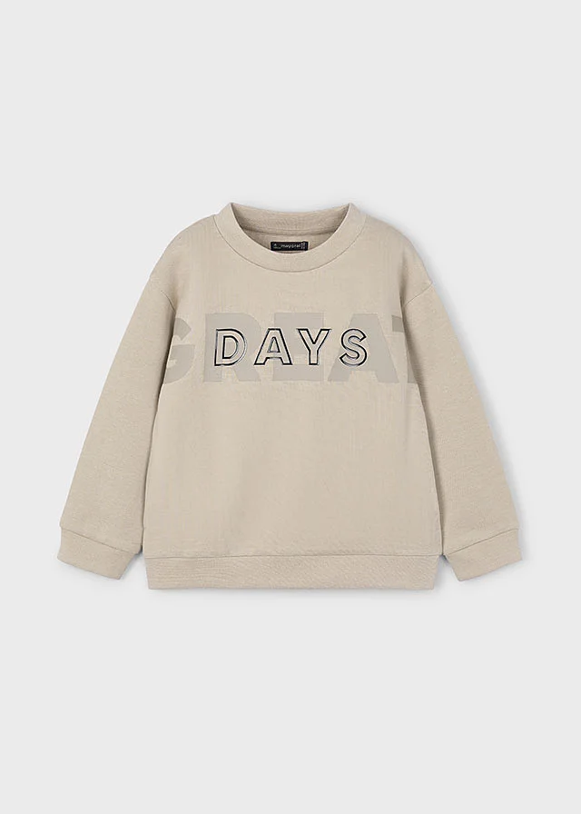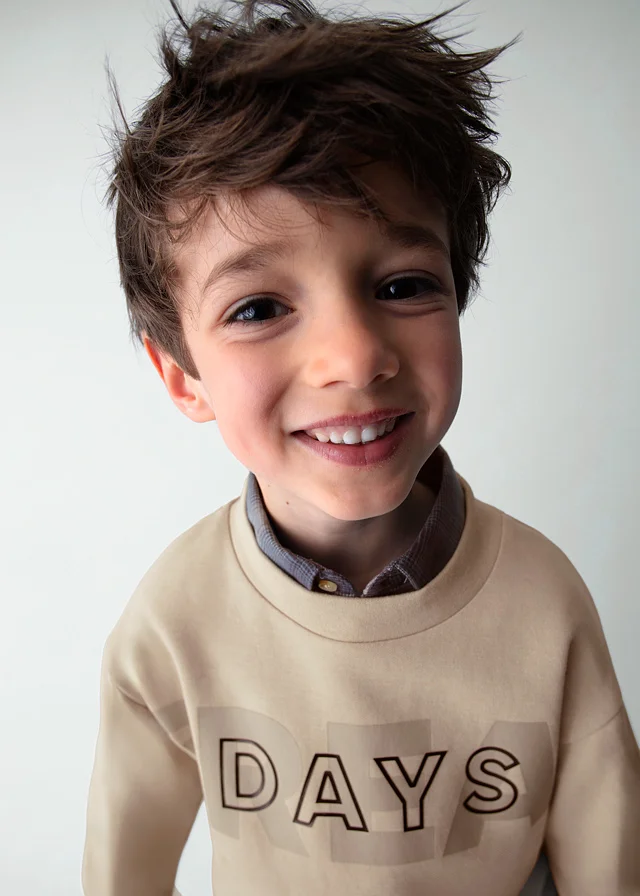 Sudadera de manga larga para niño. Cuello redondo. Tejido interlock con estructura de doble capa, perfecto para aislar del frío. Bolsillos en los laterales. Elementos de adorno: detalle en relieve (high density print), serigrafía (print).