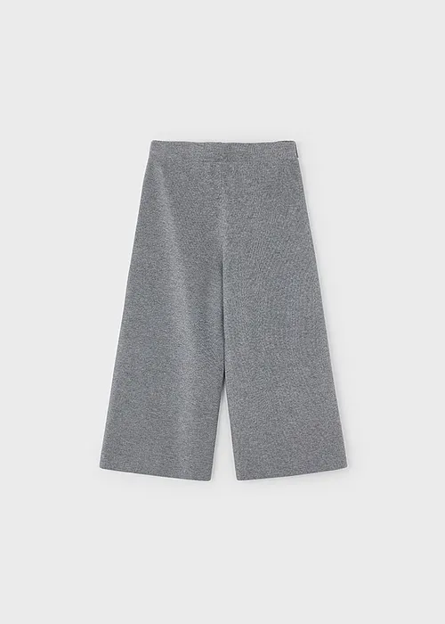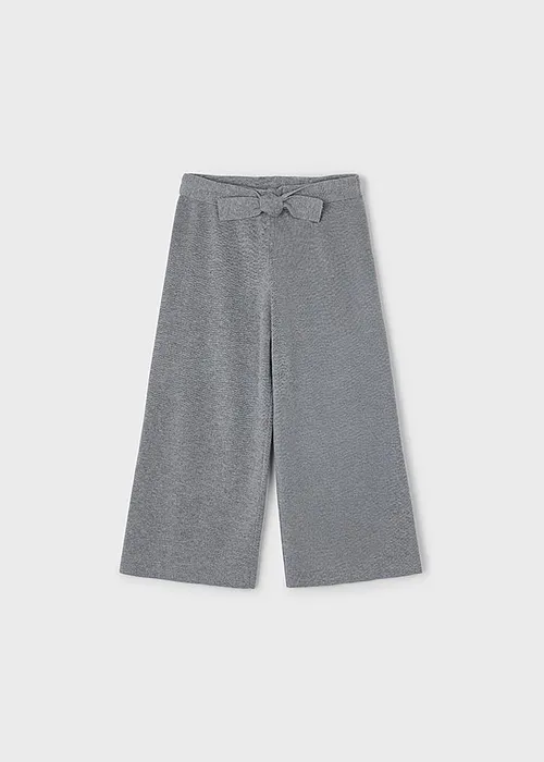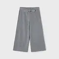 Pantalón largo de tipo culotte para niña, de línea amplia y holgada desde las caderas hasta el bajo. Ideal tanto para los looks más sofisticados como para los más informales. Cinturilla elástica. Elementos de adorno: lazo.