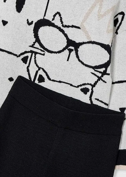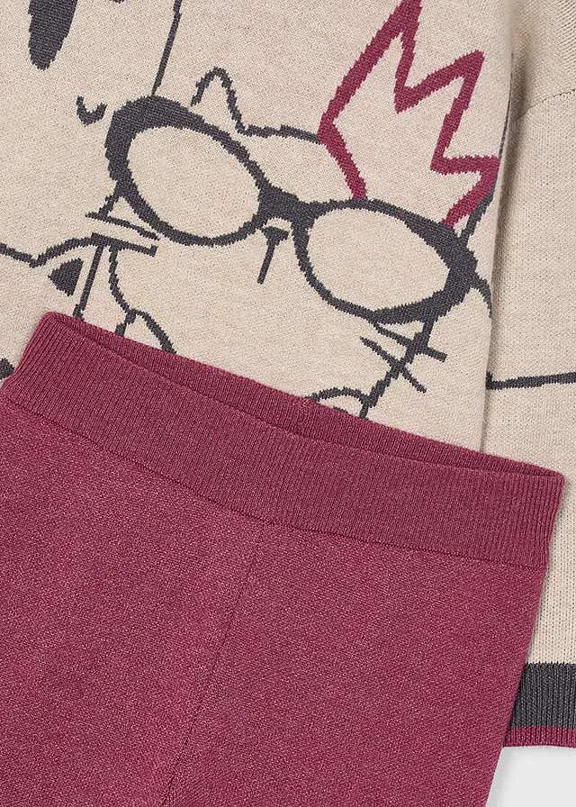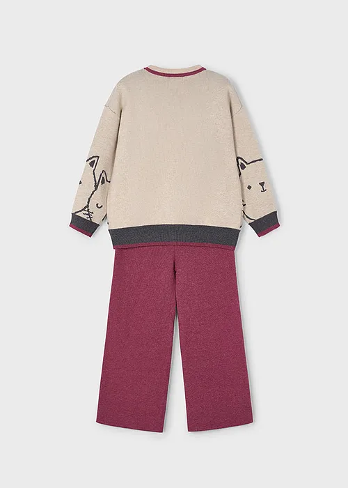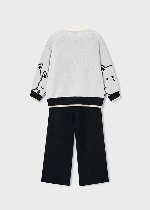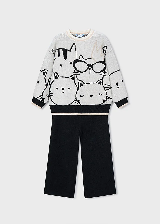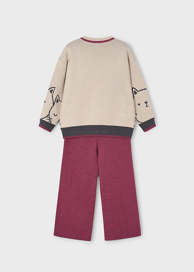 Contiene poliéster reciclado. Conjunto de jersey con pantalón largo a juego para niña. Jersey de líneas relajadas para niña. Cómodo tejido de punto. Elementos de adorno: detalles de canalé. Dibujo tejido con técnica intarsia. Pantalón para niña. Cinturilla elástica. Tejido de punto tricotosa de tacto suave y agradable.