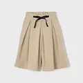Cómoda falda pantalón para niña. Cinturilla elástica. Confeccionado en twill, un tejido resistente y duradero con caída. Modelo con fuelle. Bolsillos funcionales en la parte delantera. Elementos de adorno: lazo.