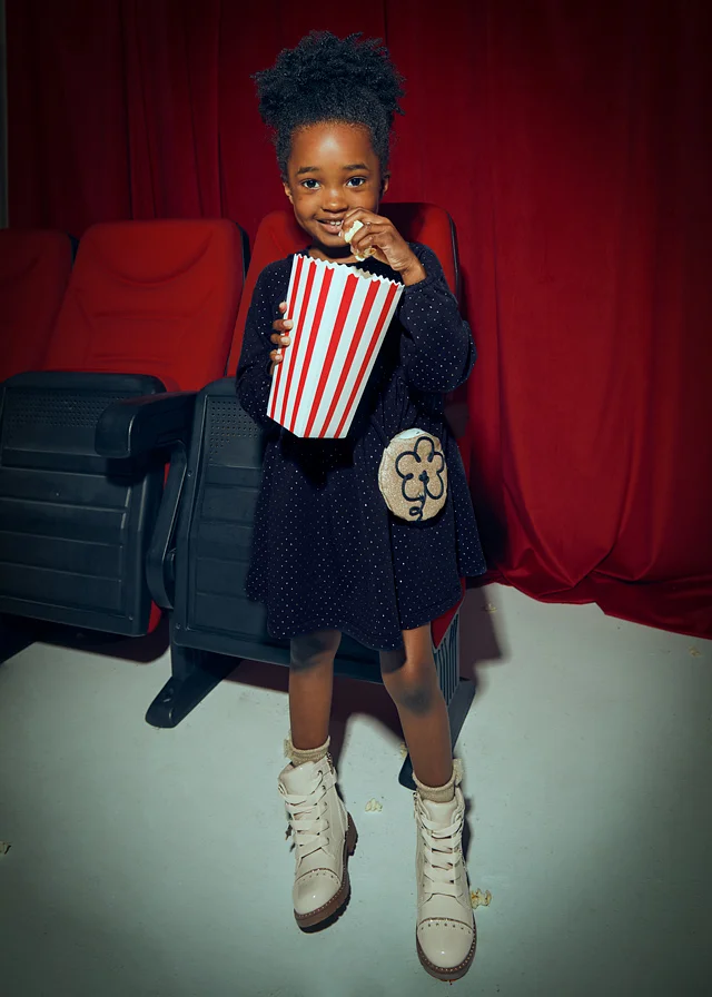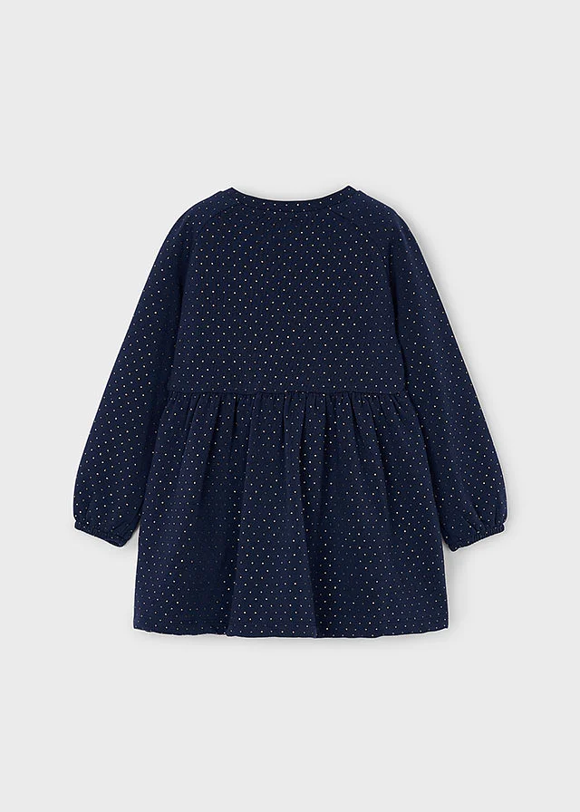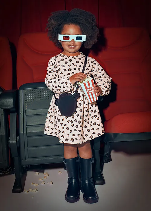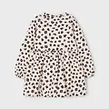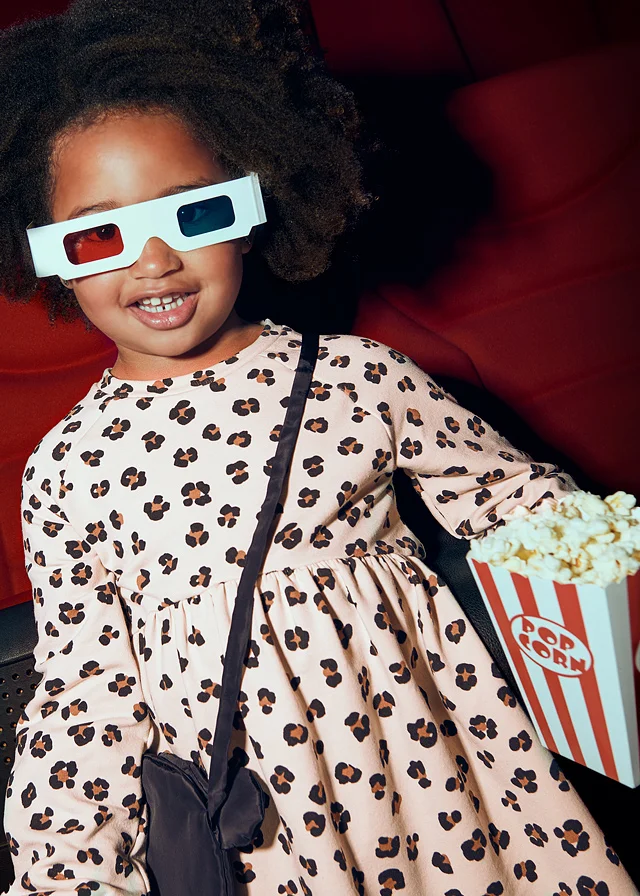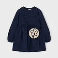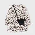 Original conjunto de dos piezas para niña. Vestido de manga ranglán para niña. Modelo con cuello barco. Cálido tejido de felpa gruesa (felpa perchada), perfecta para los meses fríos. Modelo con rizo. Bolso para niña pensado para guardar sus accesorios indispensables. Un complemento práctico y divertido para completar cualquier look.