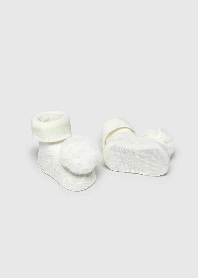Contiene algodón orgánico. Original set de dos piezas para recién nacido. Original diadema para recién nacido, perfecta como accesorio para completar el look. Elementos de adorno: pompón. Calcetines para recién nacido. Un accesorio perfecto para completar su look, dándole un toque diferente. Elementos de adorno: pompón.