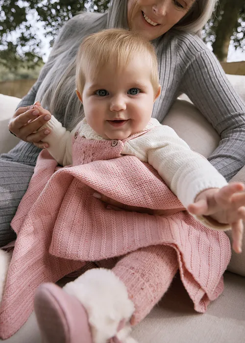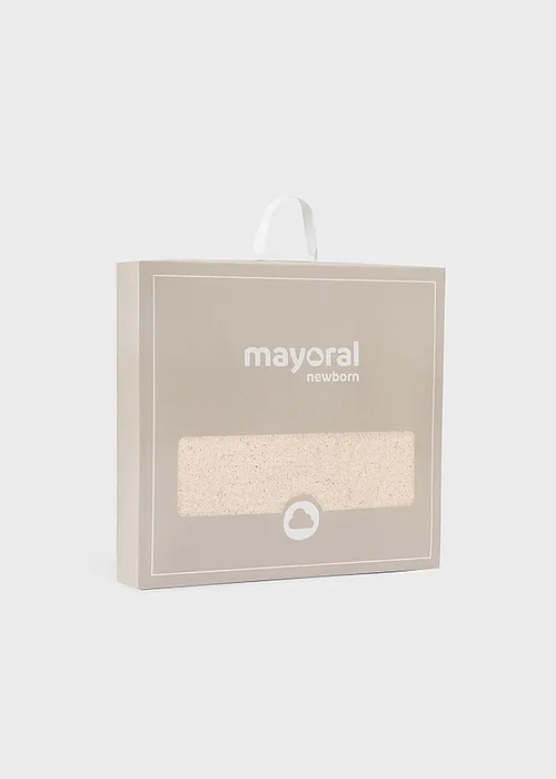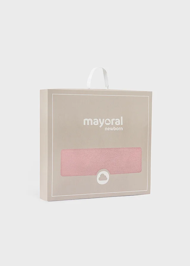 Toquilla para recién nacido de diseño envolvente en punto suave que ofrece confort al bebé en sus momentos de descanso. Medidas: 90 cm de largo x 90 cm de ancho.