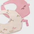 Dulce y práctico set de dos baberos para bebé. Babero para bebé. Botón a presión en el cuello para facilitar la puesta de la prenda. Este artículo incluye una cinta extraíble para poder incorporar su chupete. Se trata de un artículo de diseño unisex de gran versatilidad por la neutralidad de sus tonos y su forma. Babero para bebé. Botón a presión en el cuello para facilitar la puesta de la prenda. Elementos de adorno: bordado. Se trata de un artículo de diseño unisex de gran versatilidad por la neutralidad de sus tonos y su forma. Al elegir nuestros productos de algodón estás apoyando nuestra inversión en la iniciativa Better Cotton. El algodón Better Cotton se obtiene mediante un sistema de balance de masas y no se puede rastrear físicamente hasta los productos finales. Sin embargo, los productores de algodón se benefician de la demanda de Better Cotton en volúmenes equivalentes.