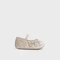 Zapatos de tipo merceditas para recién nacida, de estilo clásico y atemporal para sus estilismos más elegantes. Forro interior y plantilla de algodón transpirable. Cinta elástica para mejorar la sujeción y estabilidad de los pies. Lazo decorativo. Modelo perteneciente a nuestra línea Barefoot, con suela plana (zero drop) antideslizante y horma redonda, sin refuerzos ni piezas metálicas. Es ligero, ancho y respetuoso con el pie de los más pequeños. Además, su plantilla es antibacteriana y transpirable.