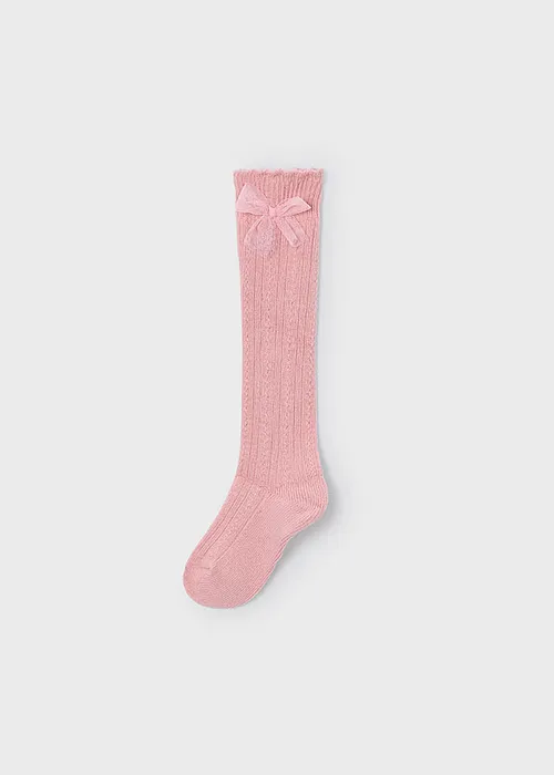Calcetines largos para niña. Un accesorio perfecto para completar su look, dándole un toque diferente. Elementos de adorno: lazo, detalles de canalé.