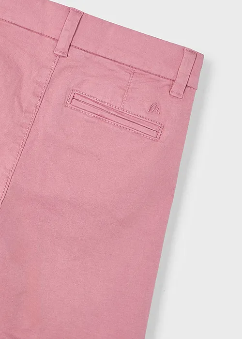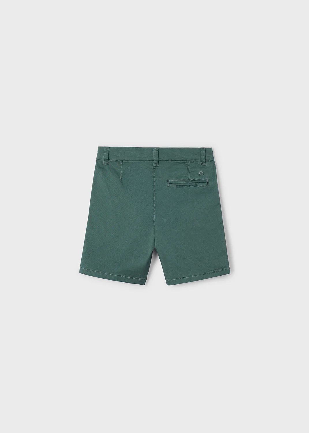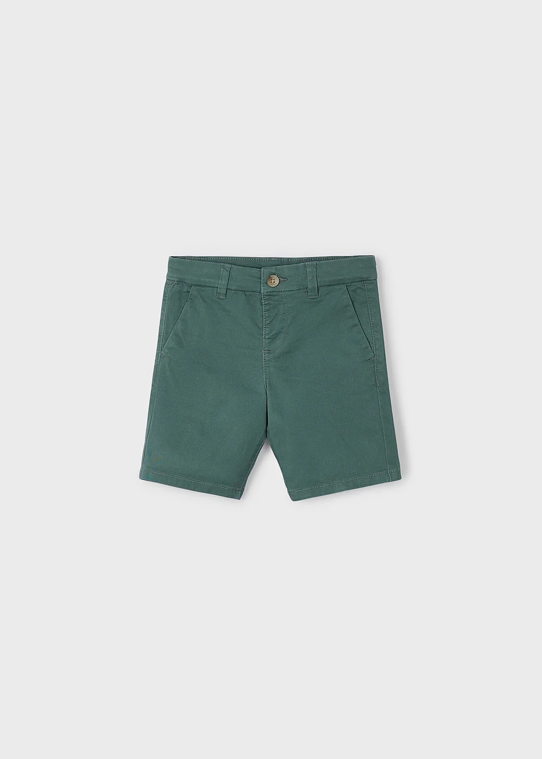 Pantalón de tipo bermuda para niño. Cierre con un único botón. Goma elástica regulable con botones en el interior de la cinturilla para mayor ajuste. Suave tejido de algodón elástico. Bolsillos funcionales en la parte delantera. Bolsillo trasero funcional. Al elegir nuestros productos de algodón estás apoyando nuestra inversión en la iniciativa Better Cotton. El algodón Better Cotton se obtiene mediante un sistema de balance de masas y no se puede rastrear físicamente hasta los productos finales. Sin embargo, los productores de algodón se benefician de la demanda de Better Cotton en volúmenes equivalentes. Modelo perteneciente a nuestra colección Mayoral Basic, una prenda esencial en su armario para completar cualquier look.