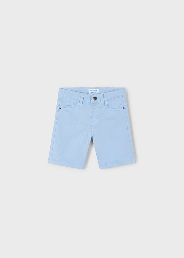 Pantalón de tipo bermuda para niño. Cierre con un único botón. Goma elástica regulable con botones en el interior de la cinturilla para mayor ajuste. Suave tejido de algodón elástico. Al elegir nuestros productos de algodón estás apoyando nuestra inversión en la iniciativa Better Cotton. El algodón Better Cotton se obtiene mediante un sistema de balance de masas y no se puede rastrear físicamente hasta los productos finales. Sin embargo, los productores de algodón se benefician de la demanda de Better Cotton en volúmenes equivalentes. Modelo perteneciente a nuestra colección Mayoral Basic, una prenda esencial en su armario para completar cualquier look.