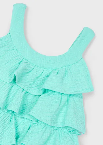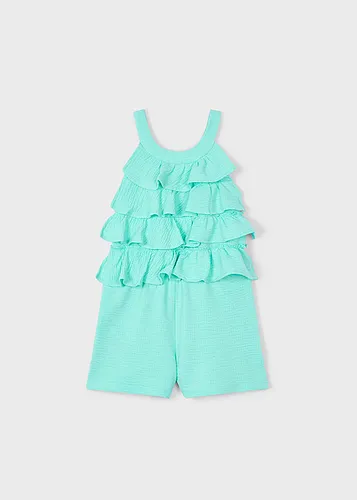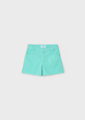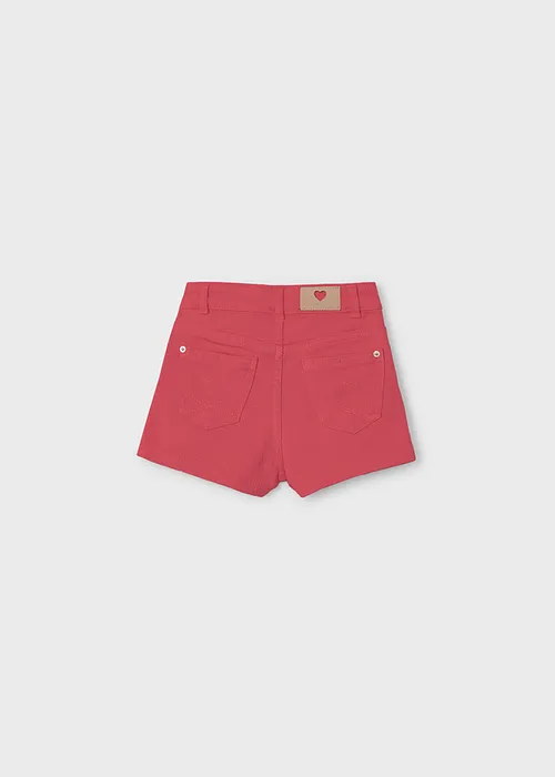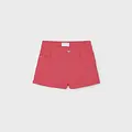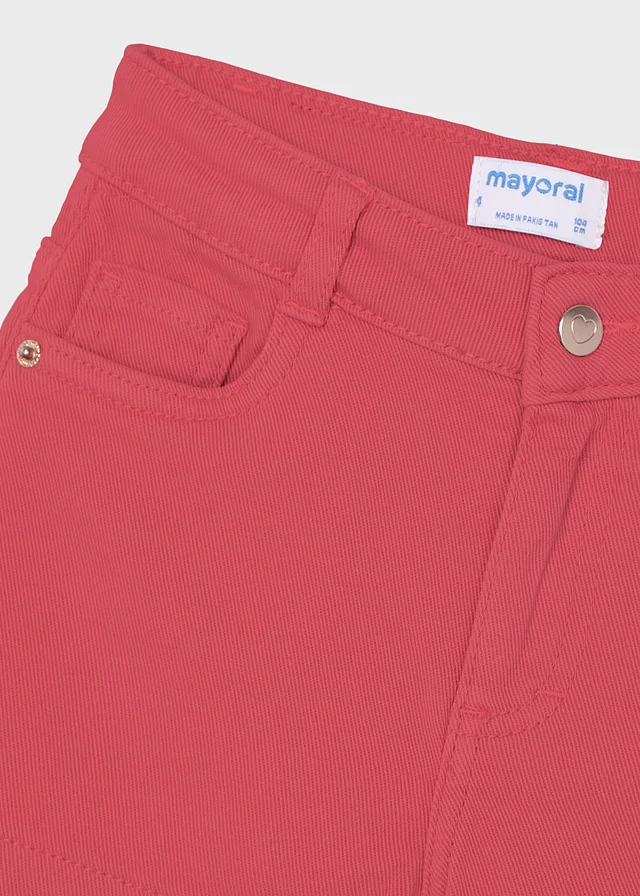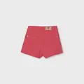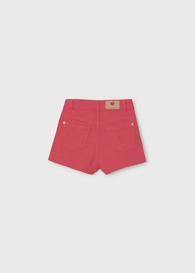 Pantalón corto para niña. Cierre con un único botón. Goma elástica regulable con botones en el interior de la cinturilla para mayor ajuste. Cómodo tejido de sarga de gran resistencia.