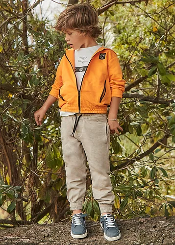 Pantalón largo para chico de corte ajustado (Slim fit). Cierre con cremallera y botón. Goma elástica regulable con botones en el interior de la cinturilla para mayor ajuste. Cómodo tejido de sarga de gran resistencia. Diseño con múltiples bolsillos. Al elegir nuestros productos de algodón estás apoyando nuestra inversión en la iniciativa Better Cotton. El algodón Better Cotton se obtiene mediante un sistema de balance de masas y no se puede rastrear físicamente hasta los productos finales. Sin embargo, los productores de algodón se benefician de la demanda de Better Cotton en volúmenes equivalentes. Modelo perteneciente a nuestra colección Mayoral Basic, una prenda esencial en su armario para completar cualquier look.