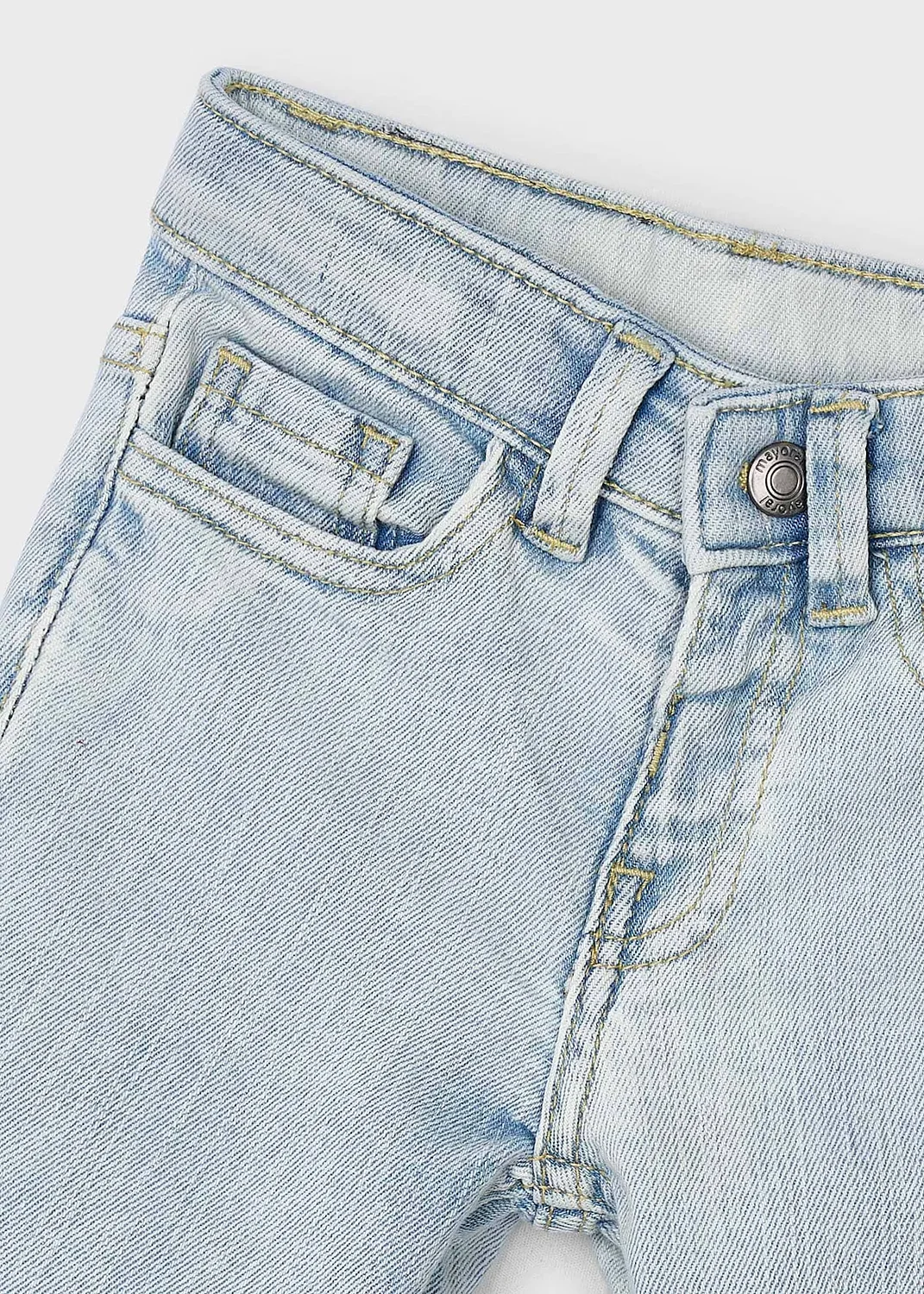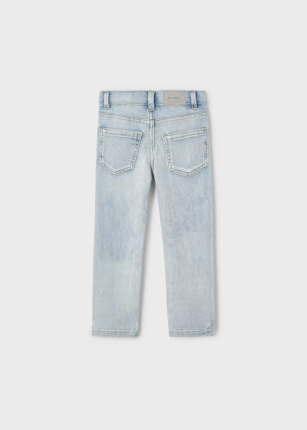 Pantalón largo de línea clásica y corte recto (Regular fit) para niño. Cierre con cremallera y botón. Goma elástica regulable con botones en el interior de la cinturilla para mayor ajuste. Tejido vaquero cómodo y combinable para los looks diarios. Diseño con múltiples bolsillos. Por motivos de seguridad, las tallas pequeñas (2-5 años) no llevarán cremallera en la bragueta, sino que será simulada. Al elegir nuestros productos de algodón estás apoyando nuestra inversión en la iniciativa Better Cotton. El algodón Better Cotton se obtiene mediante un sistema de balance de masas y no se puede rastrear físicamente hasta los productos finales. Sin embargo, los productores de algodón se benefician de la demanda de Better Cotton en volúmenes equivalentes. Modelo perteneciente a nuestra colección Mayoral Basic, una prenda esencial en su armario para completar cualquier look.