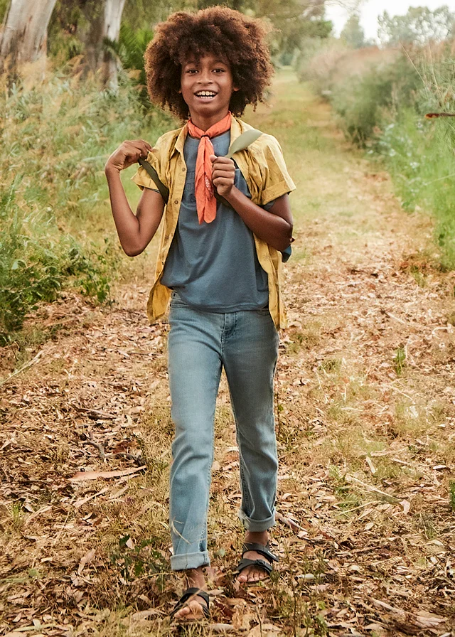 Pantalón largo de línea clásica y corte recto (Regular fit) para chico. Cierre con cremallera y botón. Goma elástica regulable con botones en el interior de la cinturilla para mayor ajuste. Diseño con múltiples bolsillos. Al elegir nuestros productos de algodón estás apoyando nuestra inversión en la iniciativa Better Cotton. El algodón Better Cotton se obtiene mediante un sistema de balance de masas y no se puede rastrear físicamente hasta los productos finales. Sin embargo, los productores de algodón se benefician de la demanda de Better Cotton en volúmenes equivalentes. Modelo perteneciente a nuestra colección Mayoral Basic, una prenda esencial en su armario para completar cualquier look.