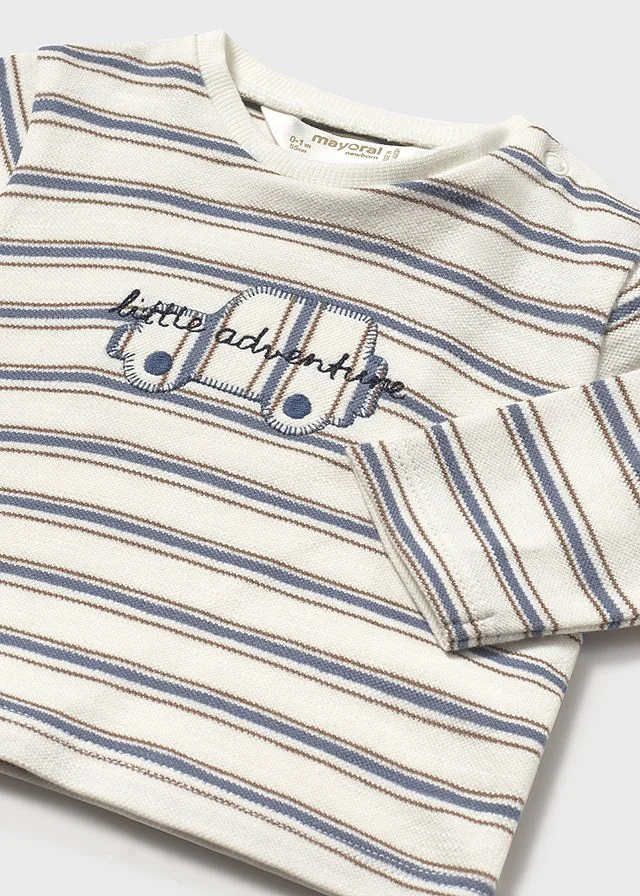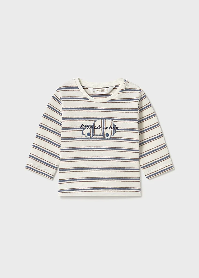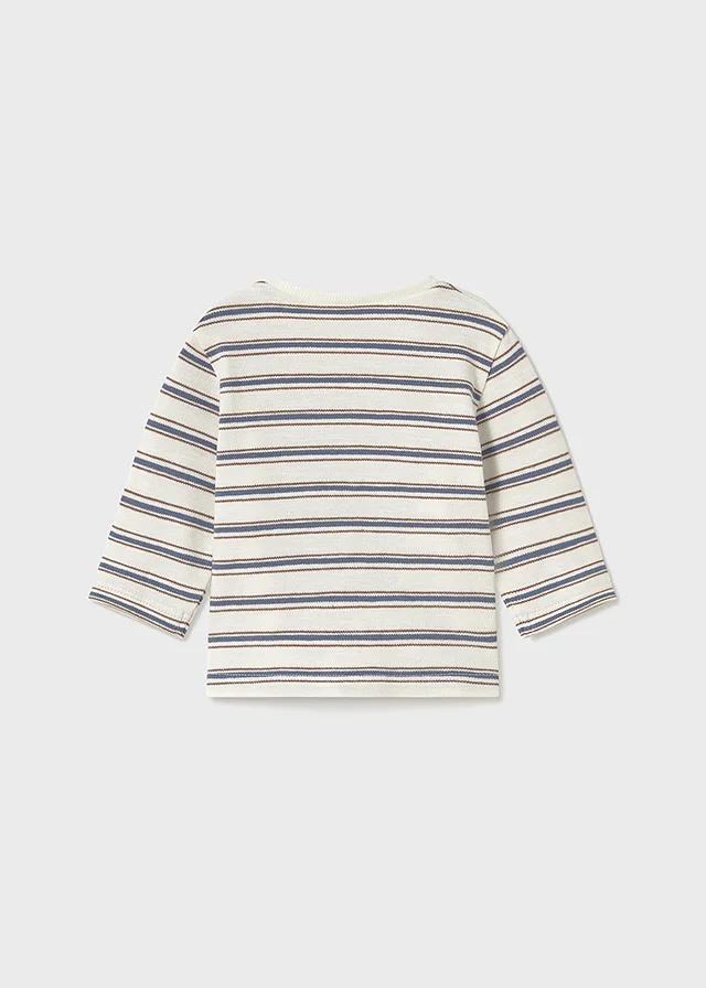 Franela de manga larga para recién nacido. Cuello redondo en distinto color. Botón a presión en el cuello para facilitar la puesta de la prenda. Suave tejido de algodón elástico. Elementos de adorno: bordado, detalles de canalé. Al elegir nuestros productos de algodón estás apoyando nuestra inversión en la iniciativa Better Cotton. El algodón Better Cotton se obtiene mediante un sistema de balance de masas y no se puede rastrear físicamente hasta los productos finales. Sin embargo, los productores de algodón se benefician de la demanda de Better Cotton en volúmenes equivalentes.