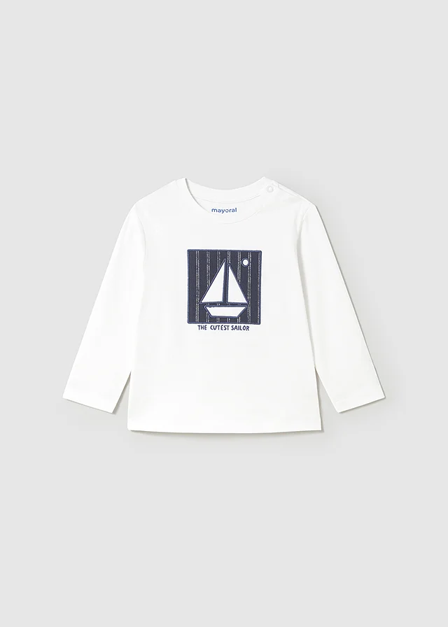 Franela de manga larga para bebé. Cuello redondo. Botón a presión en el cuello para facilitar la puesta de la prenda. Elementos de adorno: bordados en la parte delantera. Al elegir nuestros productos de algodón estás apoyando nuestra inversión en la iniciativa Better Cotton. El algodón Better Cotton se obtiene mediante un sistema de balance de masas y no se puede rastrear físicamente hasta los productos finales. Sin embargo, los productores de algodón se benefician de la demanda de Better Cotton en volúmenes equivalentes.