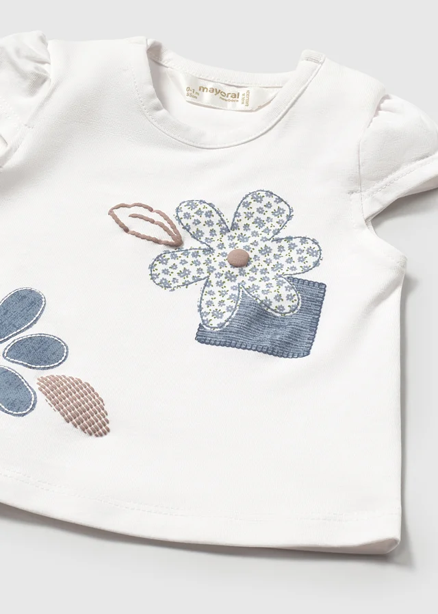 Franela de manga corta para recién nacido. Botones en el hombro para facilitar la puesta. Diseño estampado. Al elegir nuestros productos de algodón estás apoyando nuestra inversión en la iniciativa Better Cotton. El algodón Better Cotton se obtiene mediante un sistema de balance de masas y no se puede rastrear físicamente hasta los productos finales. Sin embargo, los productores de algodón se benefician de la demanda de Better Cotton en volúmenes equivalentes.