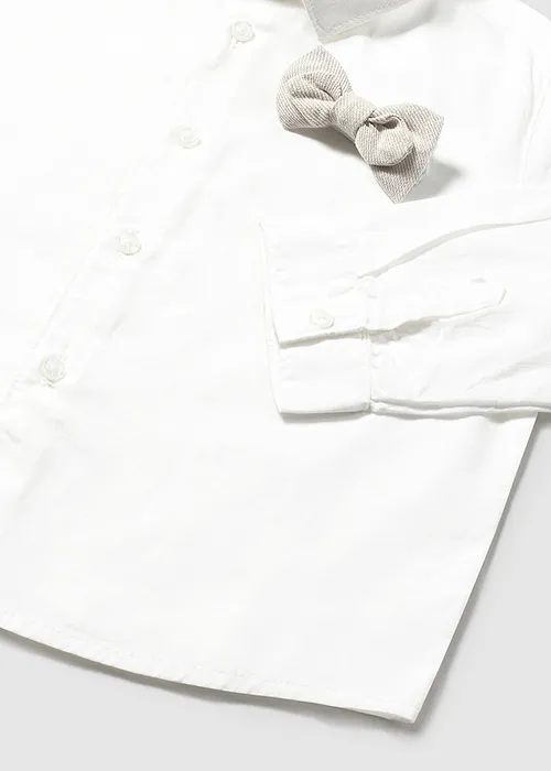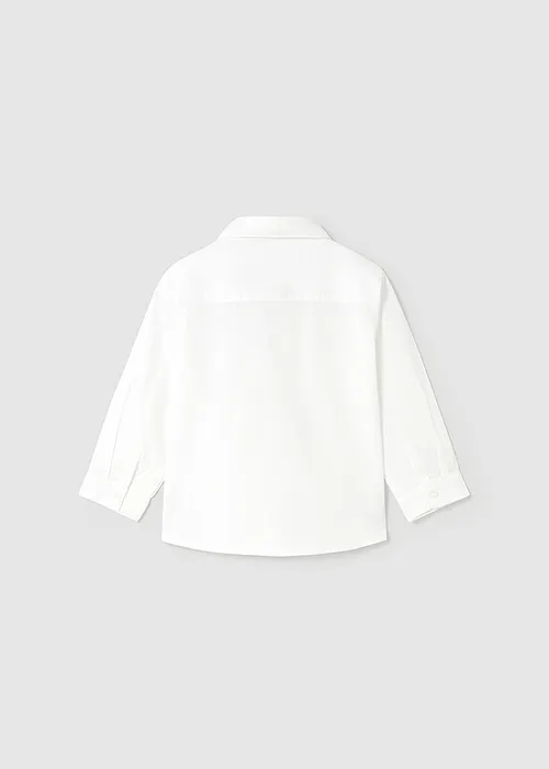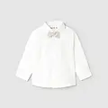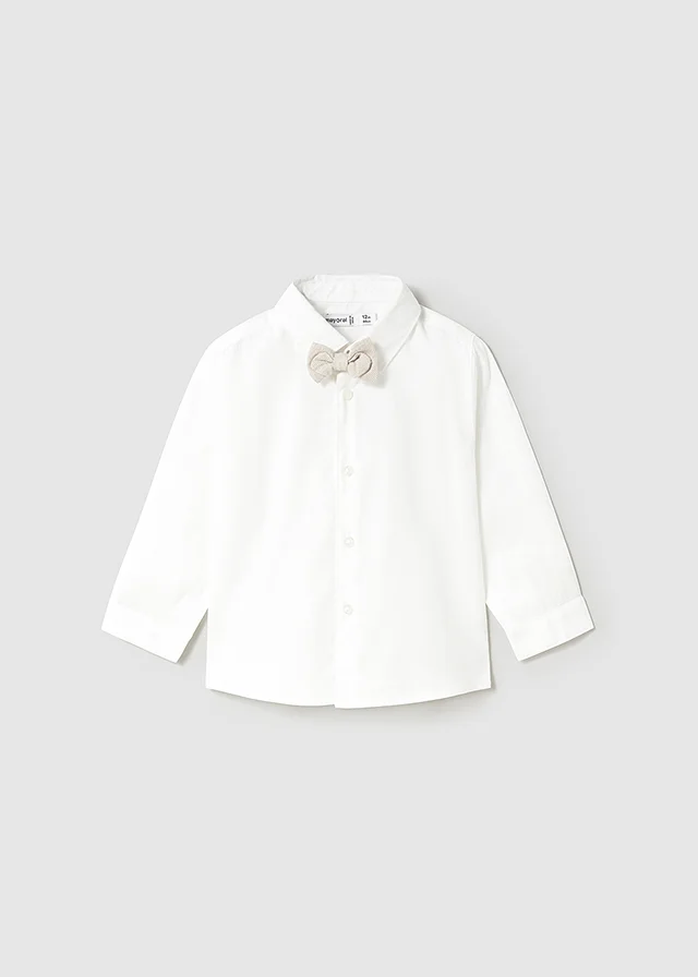 Camisa de manga larga para bebé. Cuello camisero. Cierre con botones en la parte delantera. Tejido 100% algodón. Elegante y divertida pajarita de tejido corbatero para bebé que se engancha al botón del cuello mediante un ojal de goma elástica. Al elegir nuestros productos de algodón estás apoyando nuestra inversión en la iniciativa Better Cotton. El algodón Better Cotton se obtiene mediante un sistema de balance de masas y no se puede rastrear físicamente hasta los productos finales. Sin embargo, los productores de algodón se benefician de la demanda de Better Cotton en volúmenes equivalentes.
